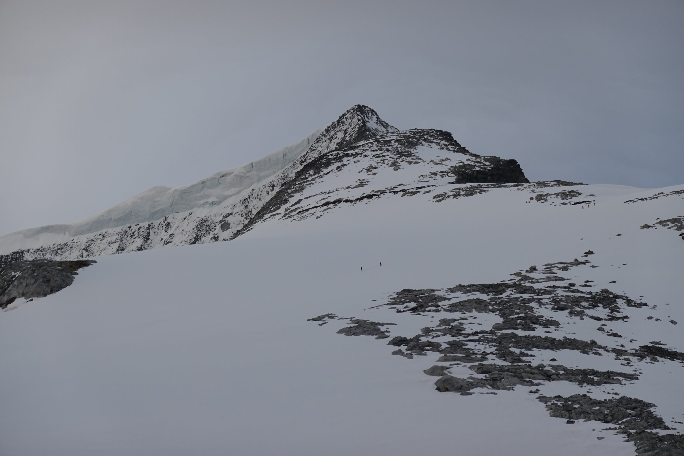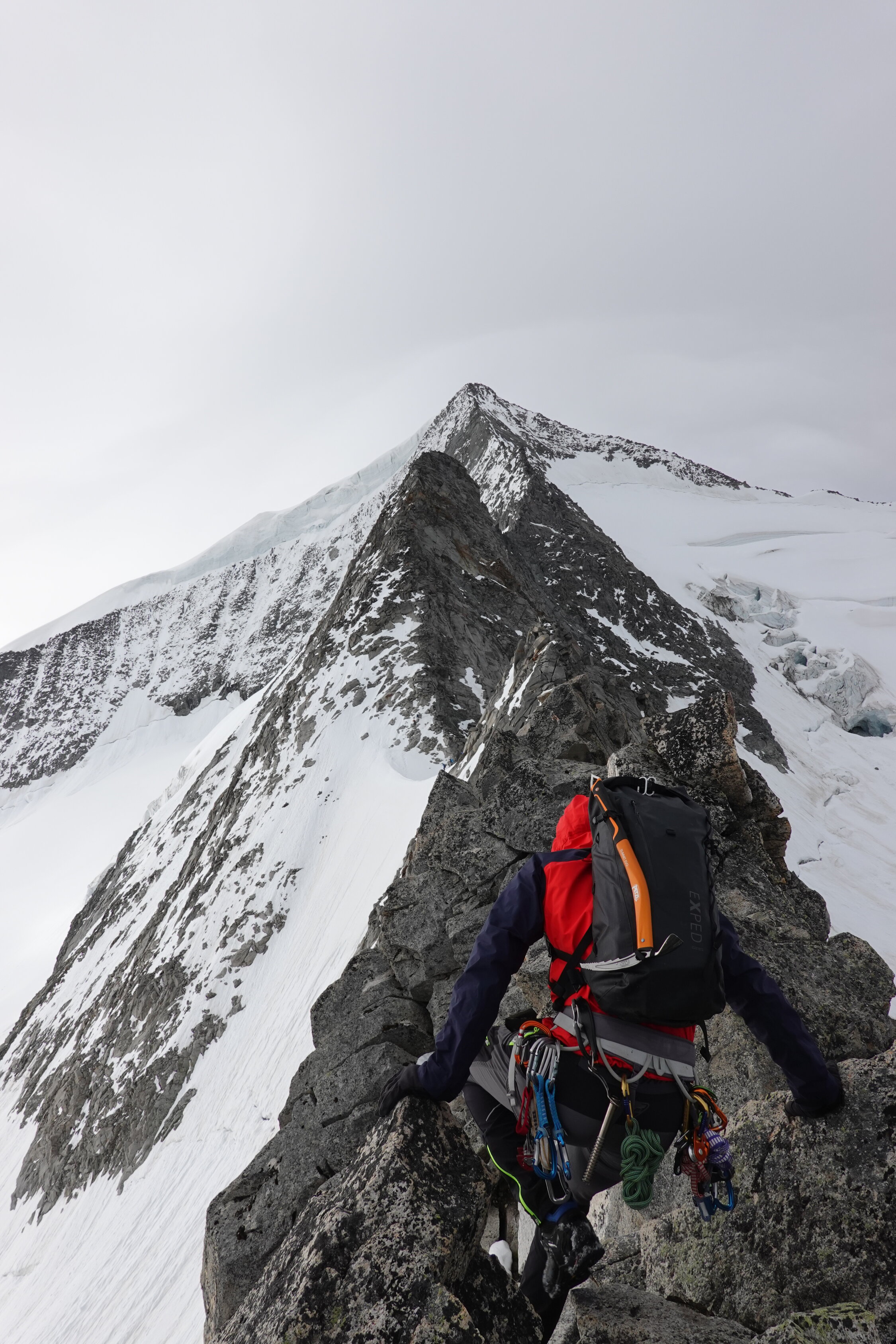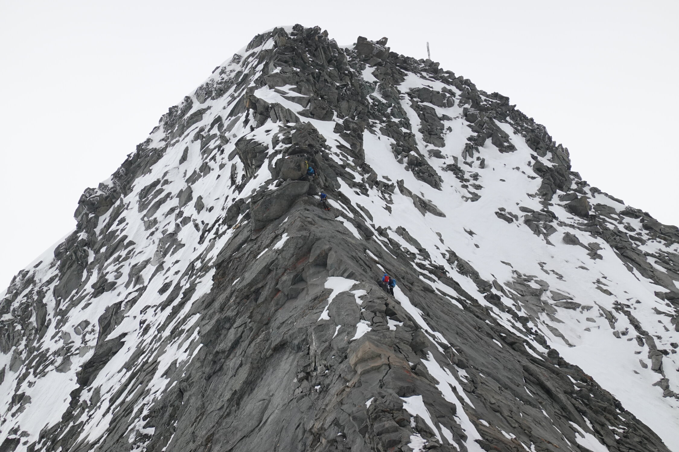 In der Früh trägt der Schnee gut solange man in der Spur bleibt, bei der Abzweigung zum Nordgrat haben die Vorgeher gute Arbeit geleistet. Sonst brichst teilweise bis übers Knie ein. Grat selber ist weitestgehendst und in den notwendigen Stücken Schnee frei somit ohne Steigeisen durchgehend zu klettern.