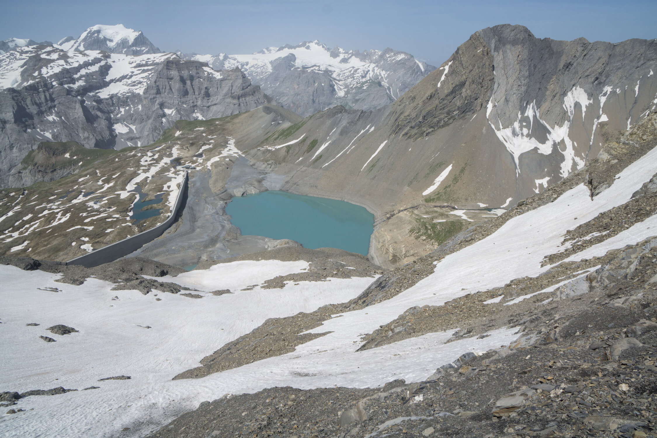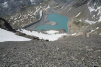 Abstieg im aufgeweichten Firn dann problemlos, wobei ich das obere Schneefeld wieder im Fels umgangen habe. Nach einem Abstecher zur Hütte dann zum Limmerensee und die Kühle geniessend durch den Stauseetunnel zurück zur Bergbahn.
