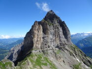Der Dossen ist ein beliebter Gipfel bei alpin orientierten Trailrunnern. Wobei, rennen i.e.S. geht im steilen und wilden Gelände nur sehr beschränkt. Klassischerweise benutzt der Trailrunner ab dem Dossensattel den Bänderweg, bei aperen Verhältnissen ist das Wandergelände (T5). Spontan bin ich im Aufstieg dann doch den Nordgrat geklettert, problemlos (II) und Genuss pur, verschiedene Linien möglich.