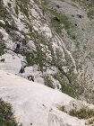 L6: Schöne 6a Länge, erst etwas Reibungskletterei, dann kleiner run out (hier würden 0,75-2 Cams super passen, in unserem Topo stand jedoch man braucht nur Keile). Dann tolle Crux direkt an einem Bolt