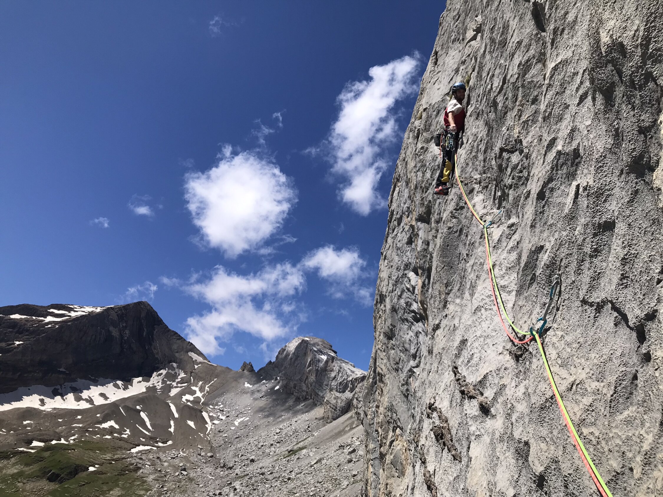Klasse Tour in super kompaktem Fels. Echt abwechslungsreich, aber vorwiegend technische Kletterei an scharfen Leistchen.