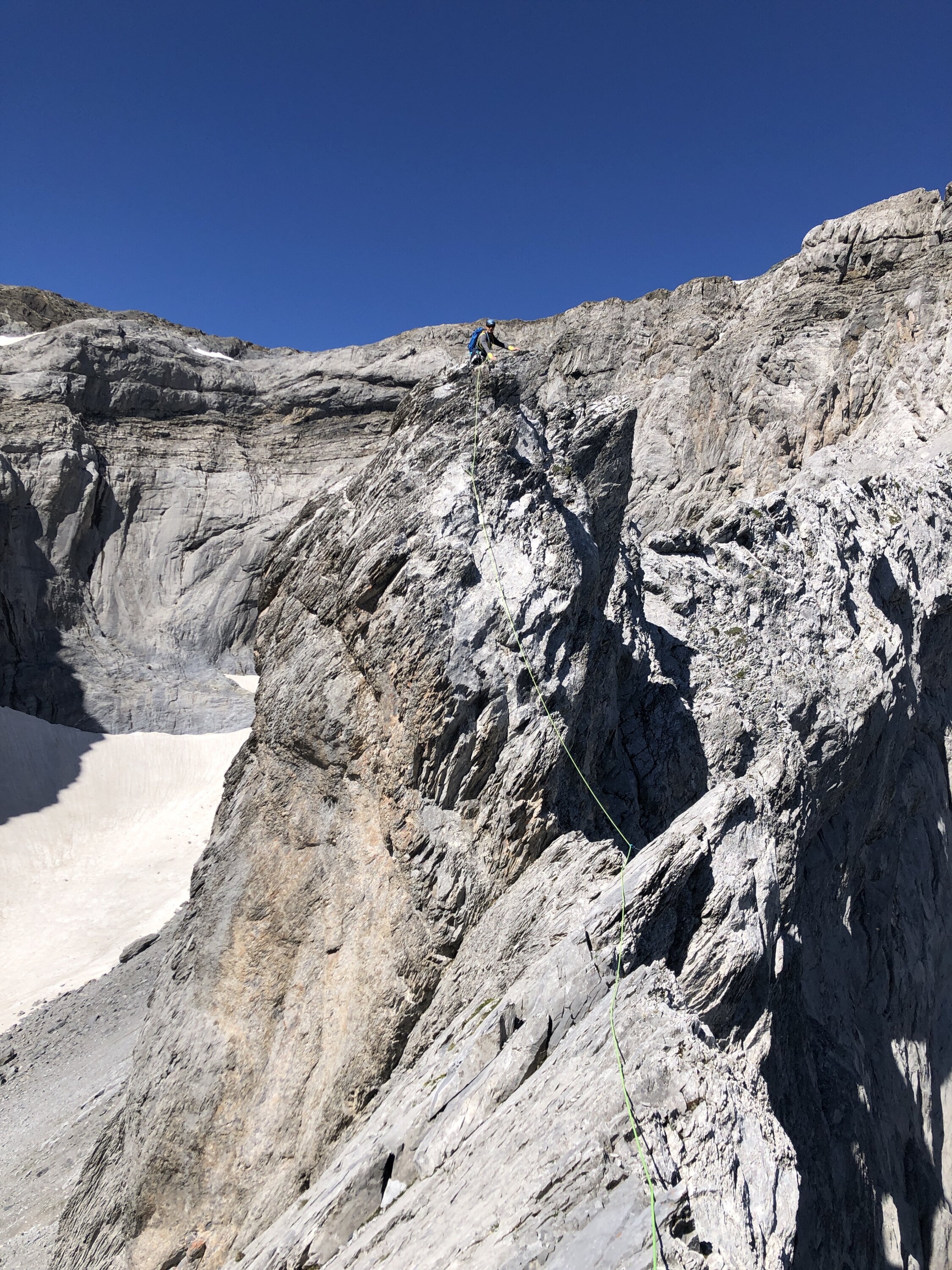 Heute waren top Bedinungen, alles trocken und gut zum klettern, wir benötigten keinen Pickel. Wo nötig wurden neu Bohrhaken gesetzt, zur zusätzlichen Absicherung sind Zackenschlingen und Frinds sehr hilfreich.