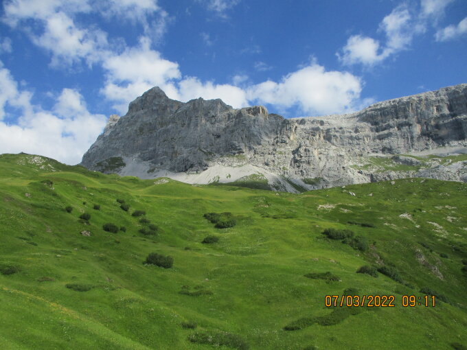 Wir kamen erst nachmittags zum Einstieg des Klettersteigs Gauentalblick. Nachdem wir eine Gruppe von Schweizer Mädels überholt hatten, gehörte der Klettersteig uns. Traumhaft schön auch der spätnachmittäglich-frühabendliche Abstieg via P. 2698 durchs Gemschtobel. Die Stille und die Verlassenheit inmitten stotziger Kalkwände war eine Wonne :-)