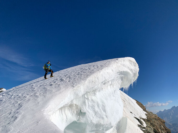 ausgezeichnete Verhätnisse auf der ganzen Route! Bester Trittfirn am Grat und im Zustieg. Felspassagen trocken und schneefrei. Es hatte naehzu keinen Wind und alle felspassagen konnten im sonnigen Fels ohne Handschuhe geklettert werden.