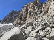 Tajabone 6a (5c obl.) 7 SL führen zu dem Vorbau ( promontoire ) der Aiguille Sans Nom