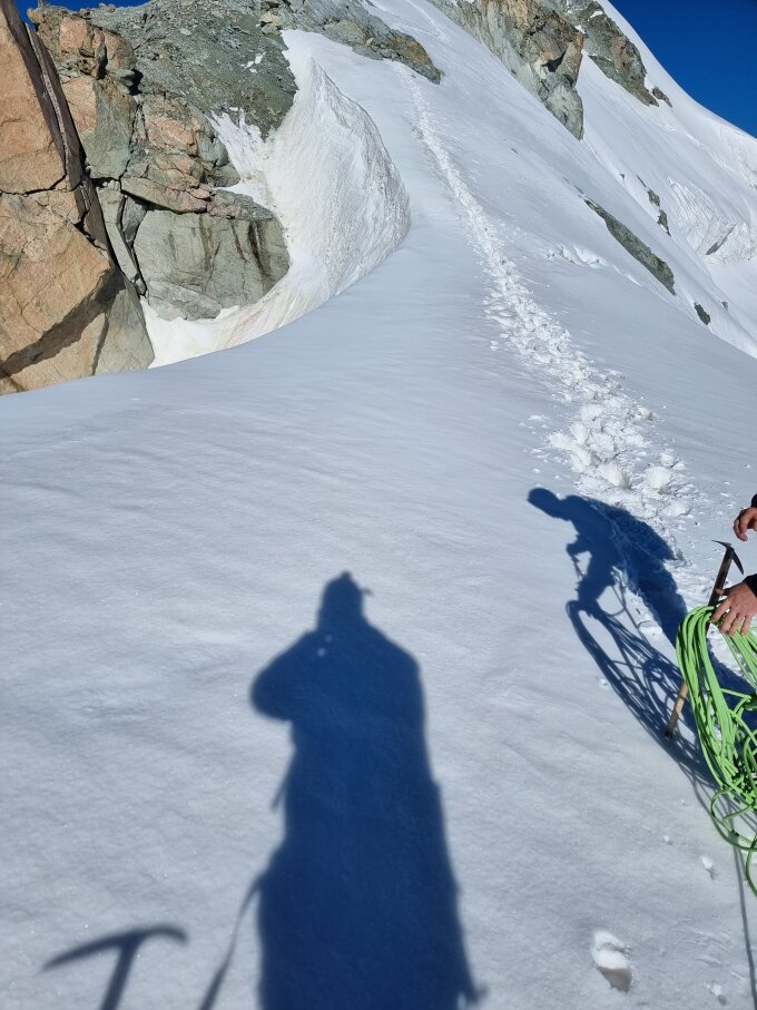Gletscher gefroren bei diesen niedrigen Temperaturen, Gipfelgrat Harttrittschnee, kein Blankeis!
