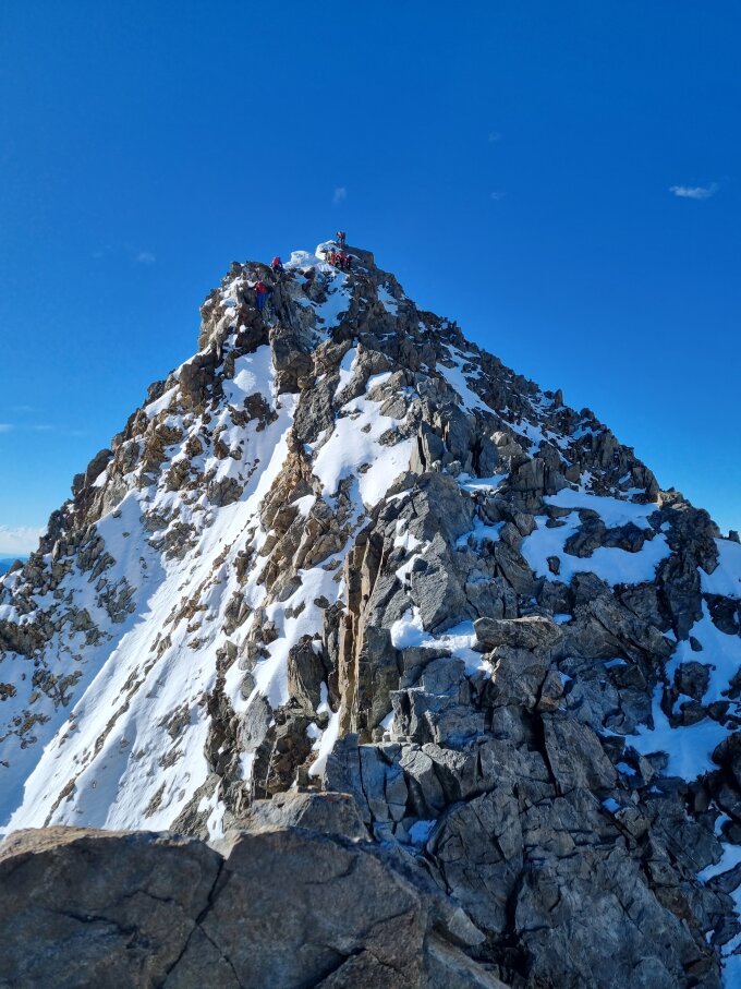 perfekte Verhältnisse am Finsteraarhorn. Steigeisen und Pickel aktuell am Felsgrat nicht nötig.
