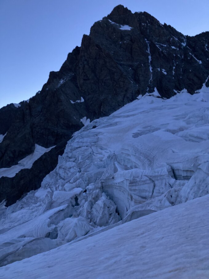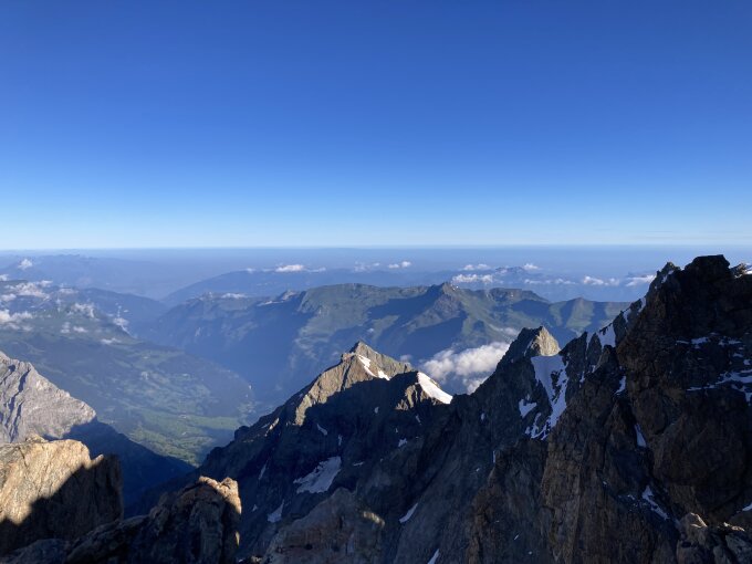 Zur Zeit augezeichnete Verhältnisse am Schreckhorn, gesamter SW-Grat trocken und schneefrei.