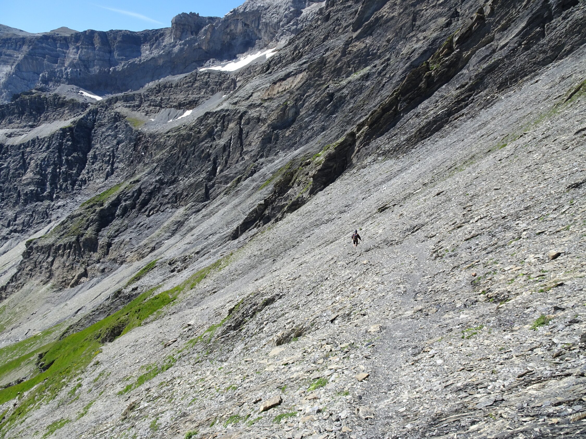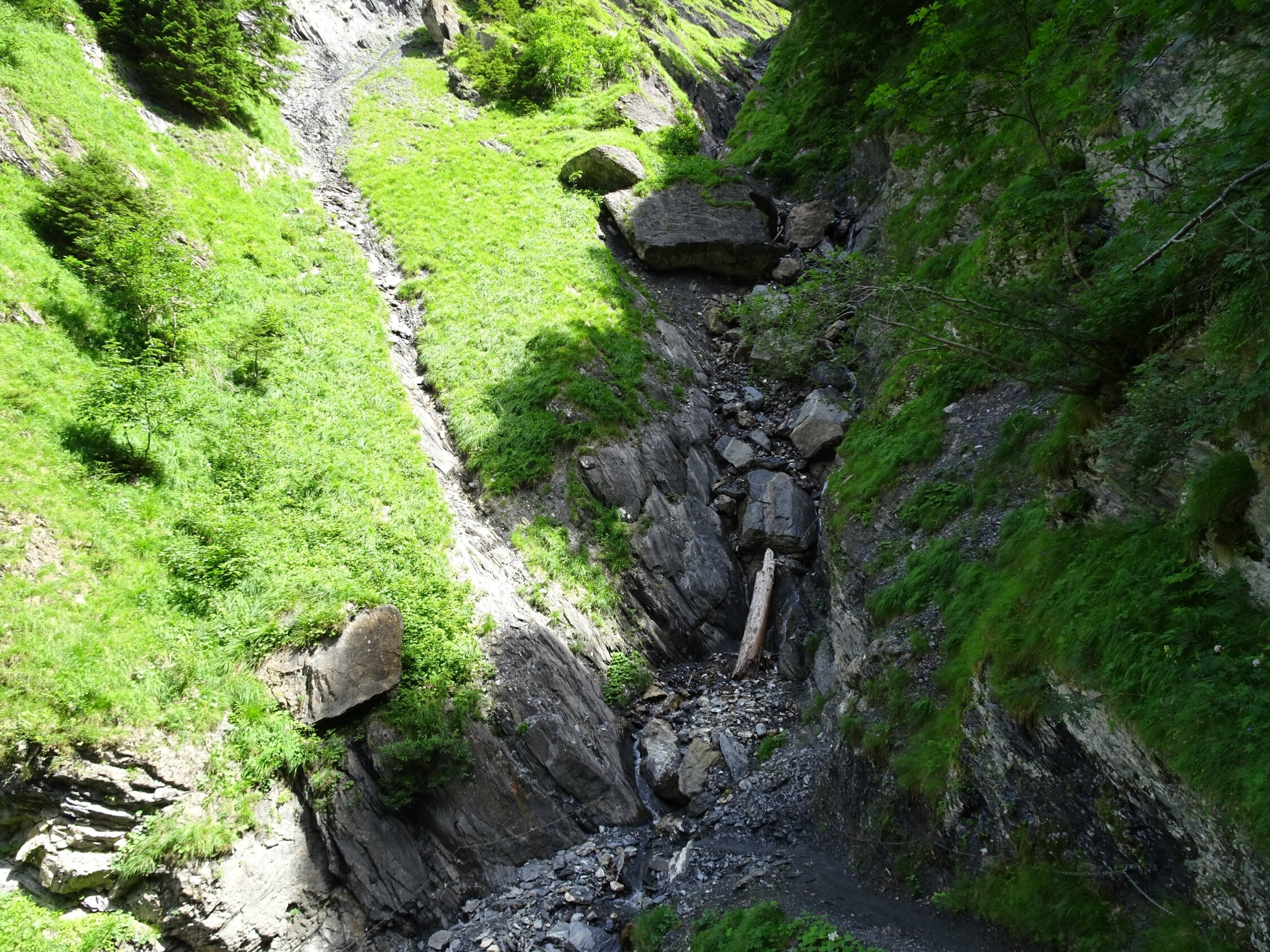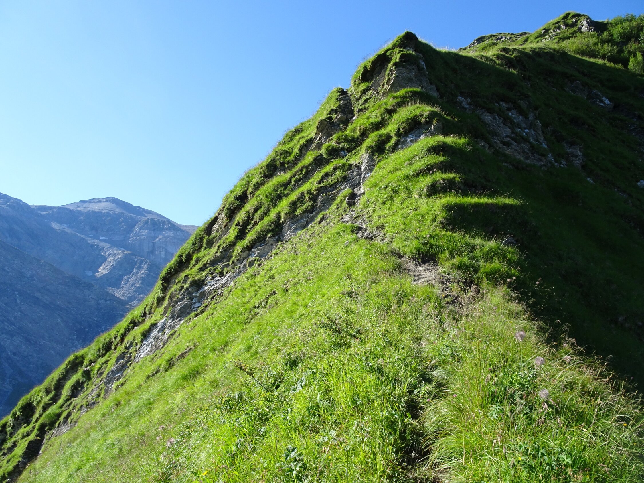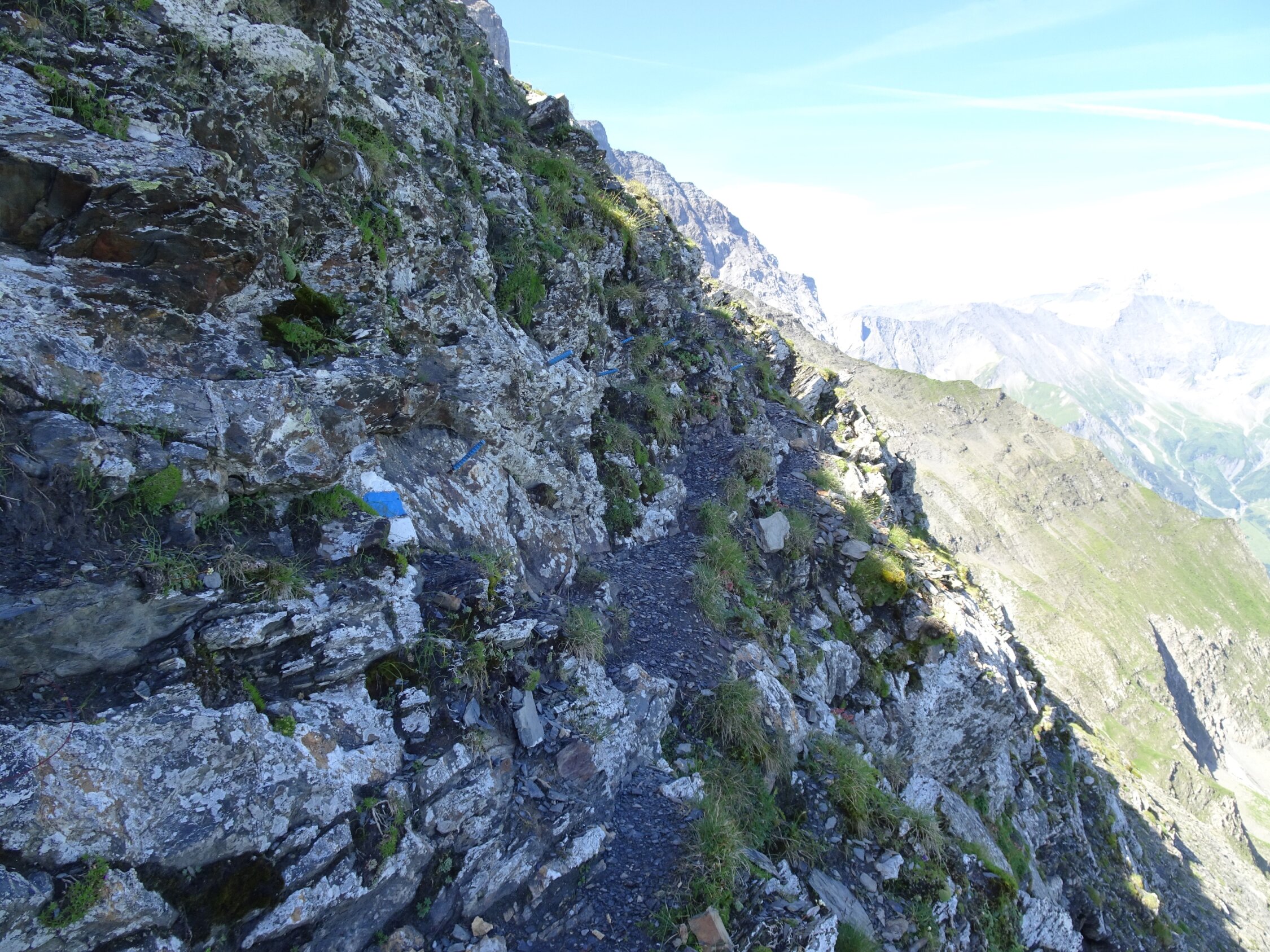 Wege am Morgen noch oft feucht-nass. An der Sonne rasch trocken. Der w-b-w markierte Weg über Gandstock und Mittaghorn war an manchen Passagen ziemlich feucht, aber Dank Seil- und Stiftsicherungen gut machbar. Abstieg zur Martinsmadhütte anfangs ziemlich bröselig; ab der Hütte schön trockenes T3-Gelände…