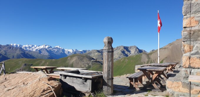 Einkehrmöglichkeit oder Uebernachtung bei der CAS Chammana d`Es-cha, mit einem leckeren Schnitzelbrot beim Rückweg.