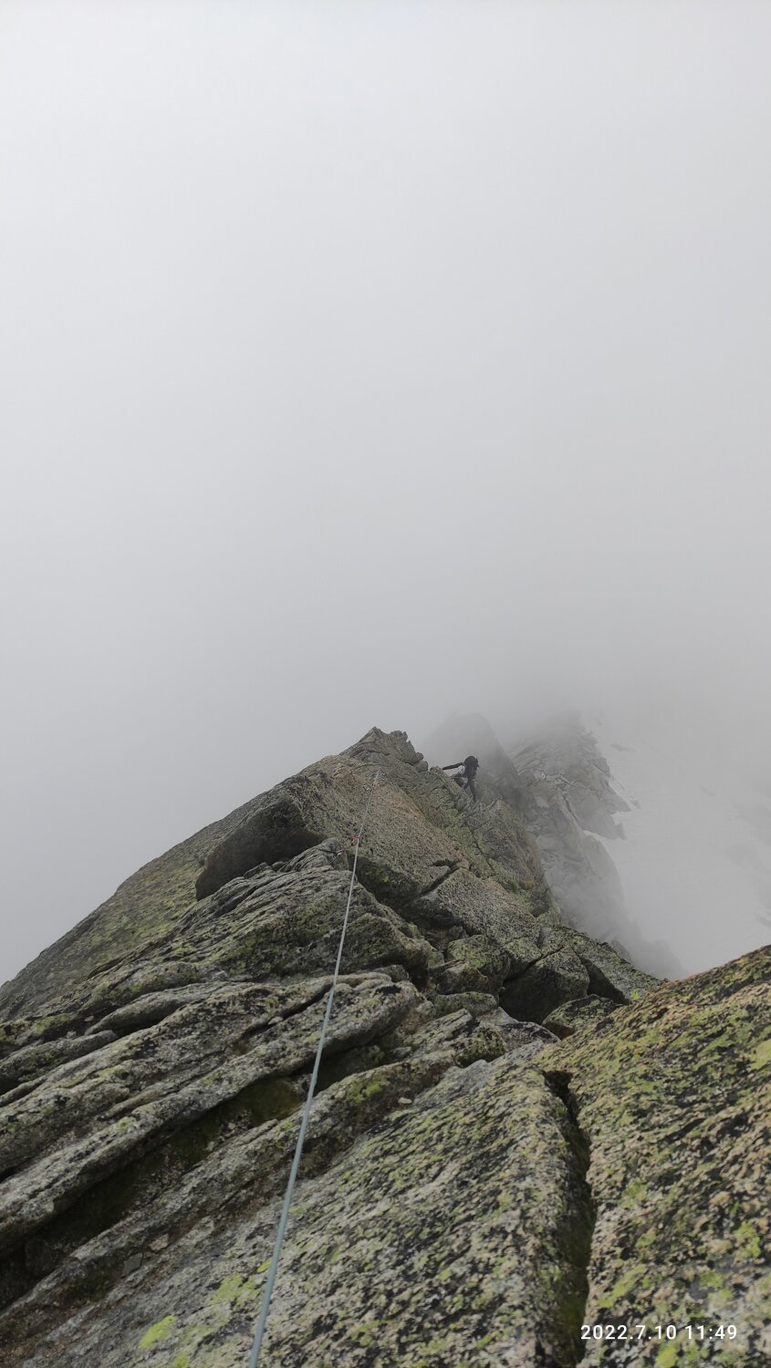 Wetter: Leicht bewölkt, Grat teilweise in Wolken. Mässiger Wind, angenehme Temperaturen.