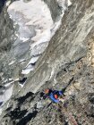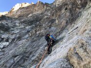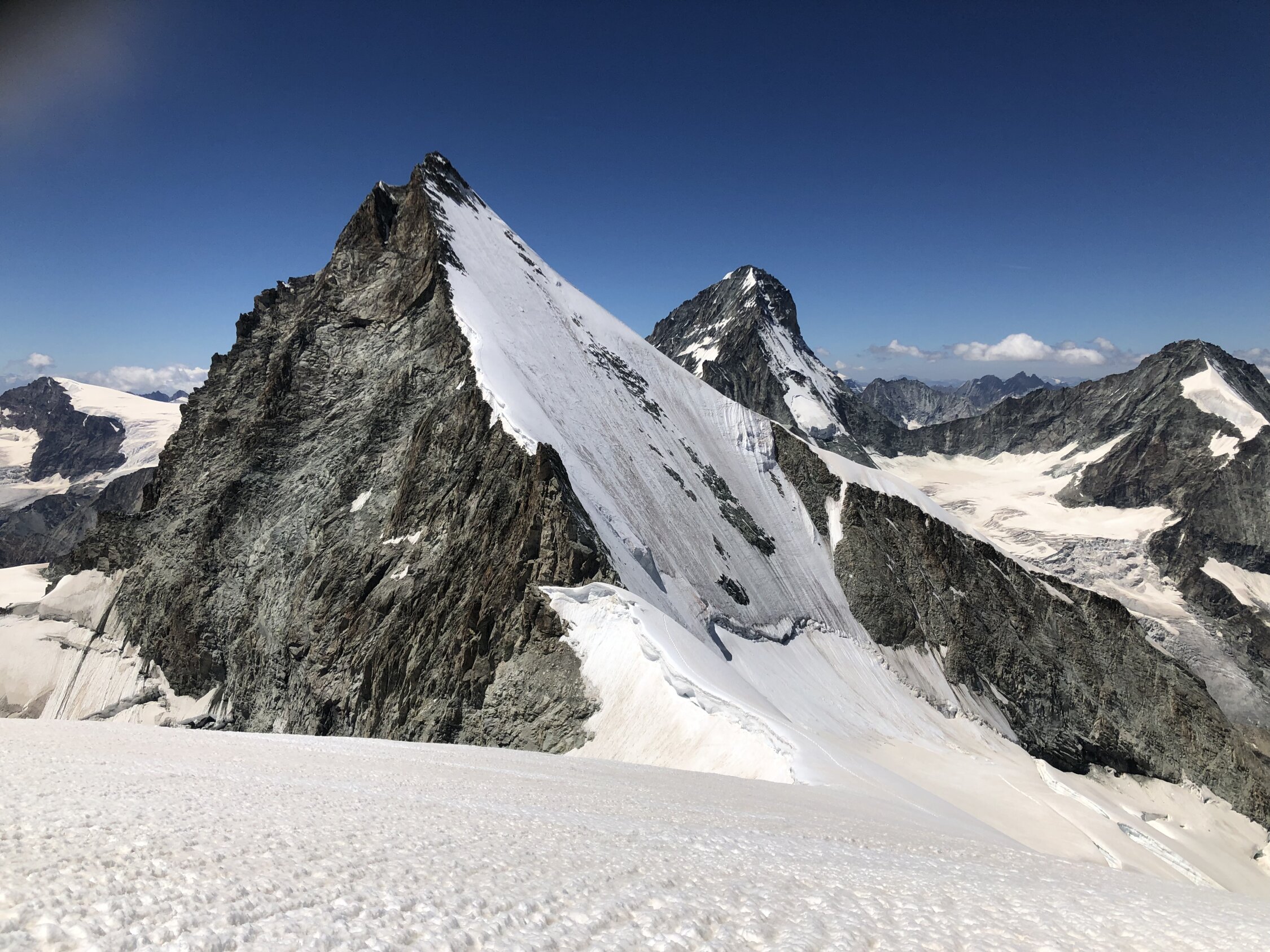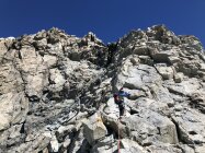 Sehr gute Verhältnisse im Aufstieg durch die Südwand! Die Wand ist praktisch trocken (bis auf das Couloir nach dem Kohlenband). Entgegen anderslautenden Aussagen ist der Fels wirklich vom ersten Meter an bis zum Kohlenband einwandfrei. Einzig das fast vollständig ausgeaperte Couloir ist brüchig und schuttig, lässt sich aber gut an der rechten Seite umgehen.