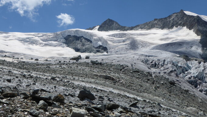 Verhaeltnisse so gut wie das Wetter. Der Gletscher schwindet fast im Zusehen :-( Der Grat ist trocken und das Fels warm... der Firngrat oben apert langsam aus, kann zur Zeit links umgangen werden.