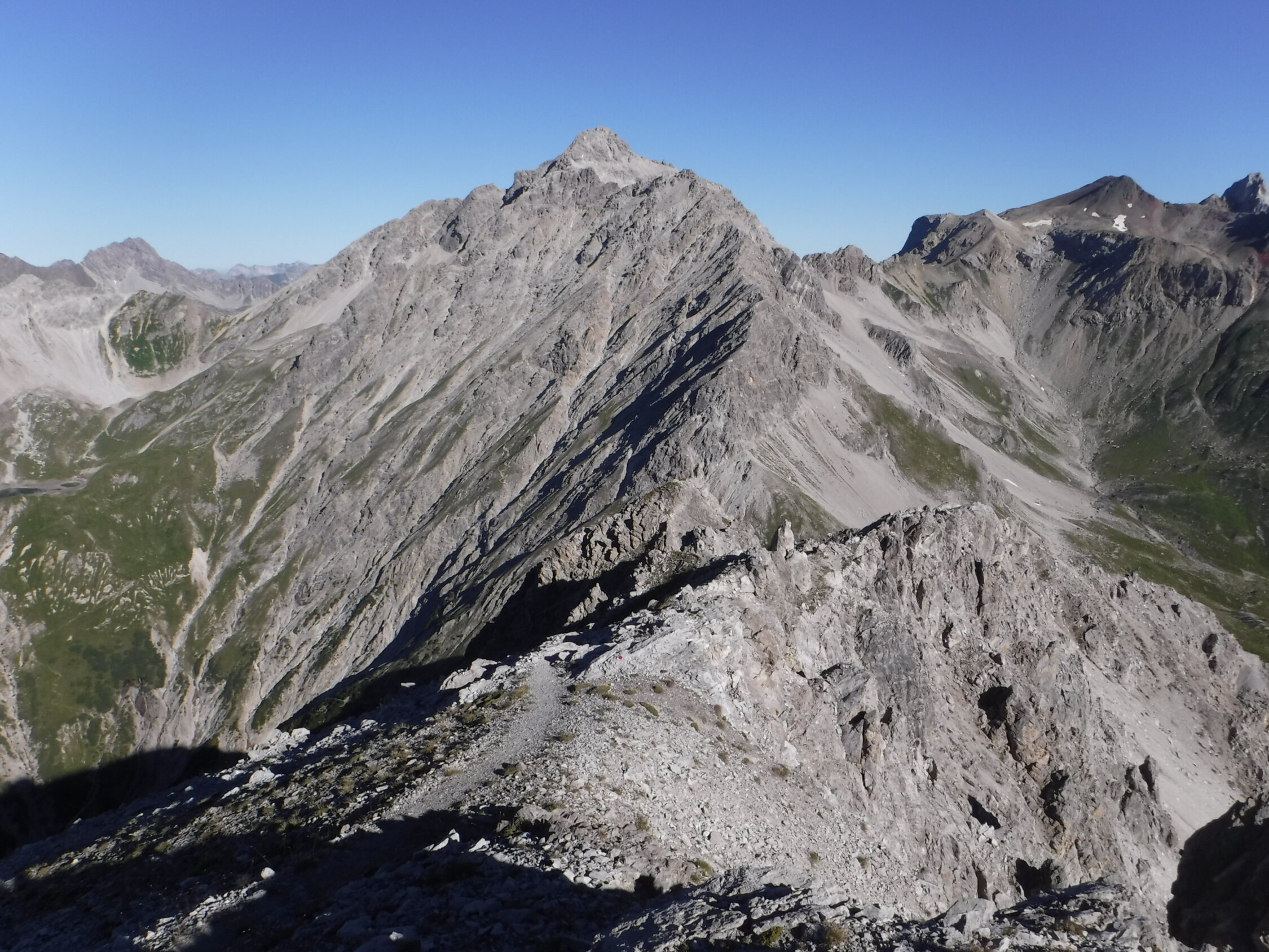 Tour ab dem Alperschonjoch verlängert um die lange Panorama-Kletter-Schleife über die Vorderseespitze.