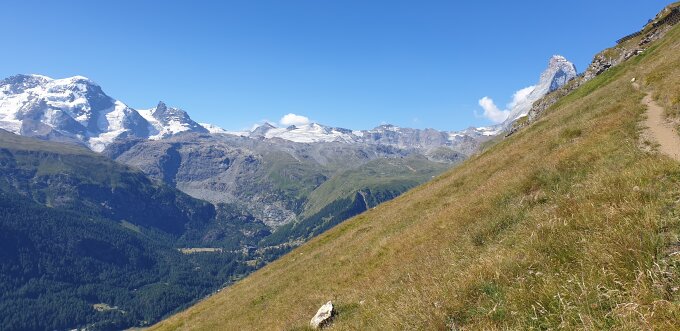 Tolle Aussichten auf Wisshorn, Rothornhütte und Höhbalmen.