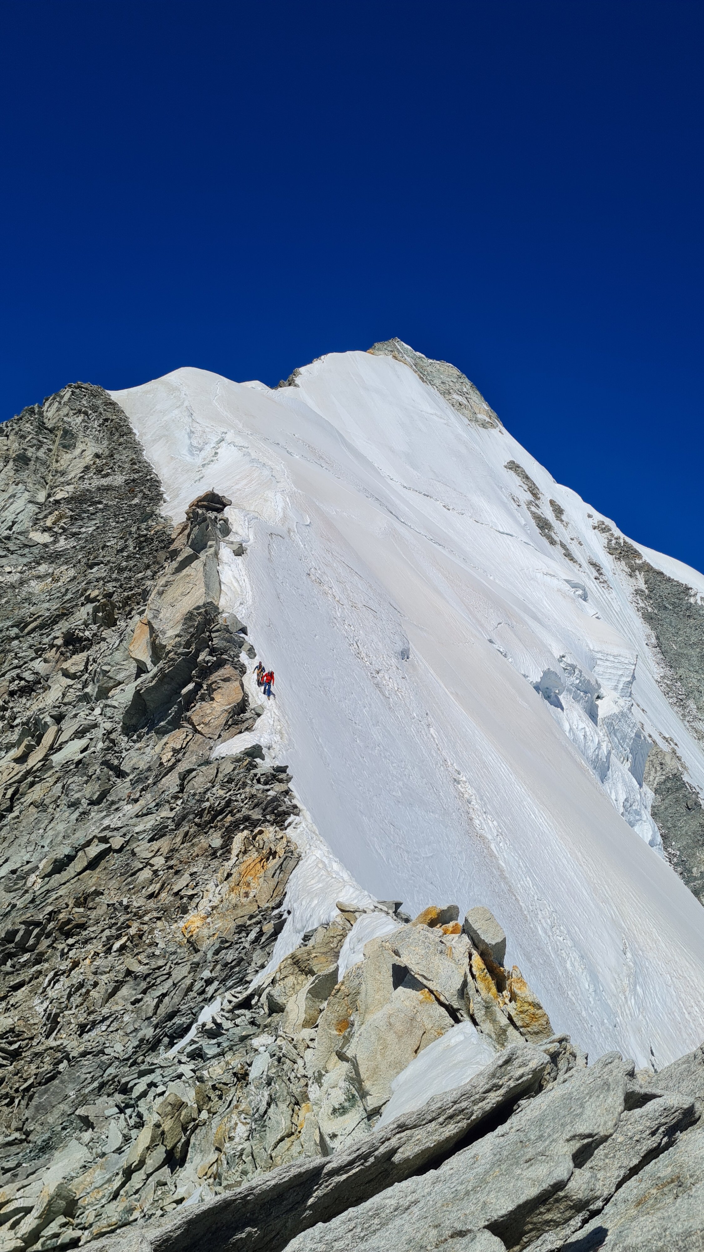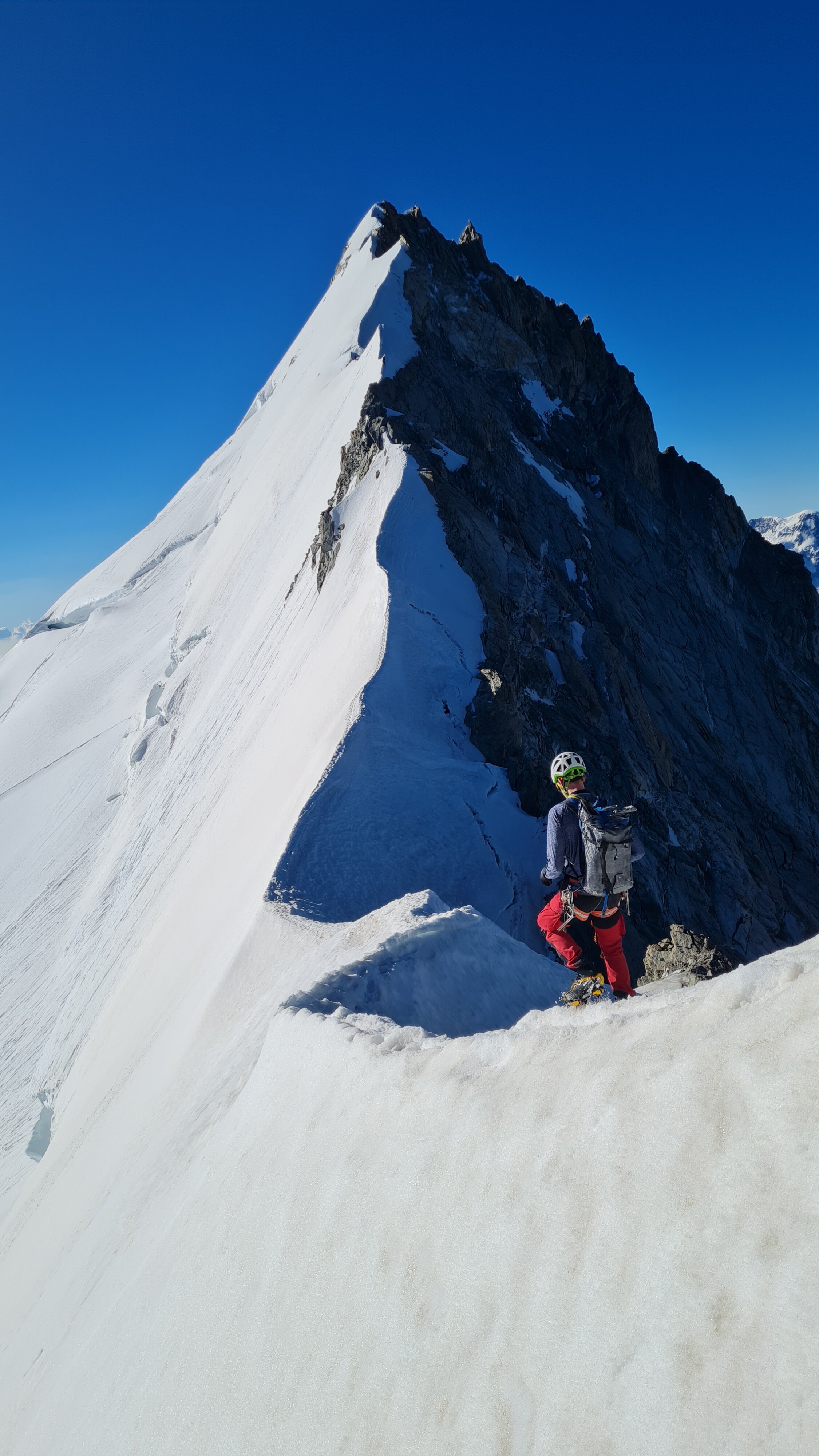 (Dieser Tag war sonnig, sehr hohe Lufttemperatur, quasi windstill - Grat wurde in Shirt erklettert)
