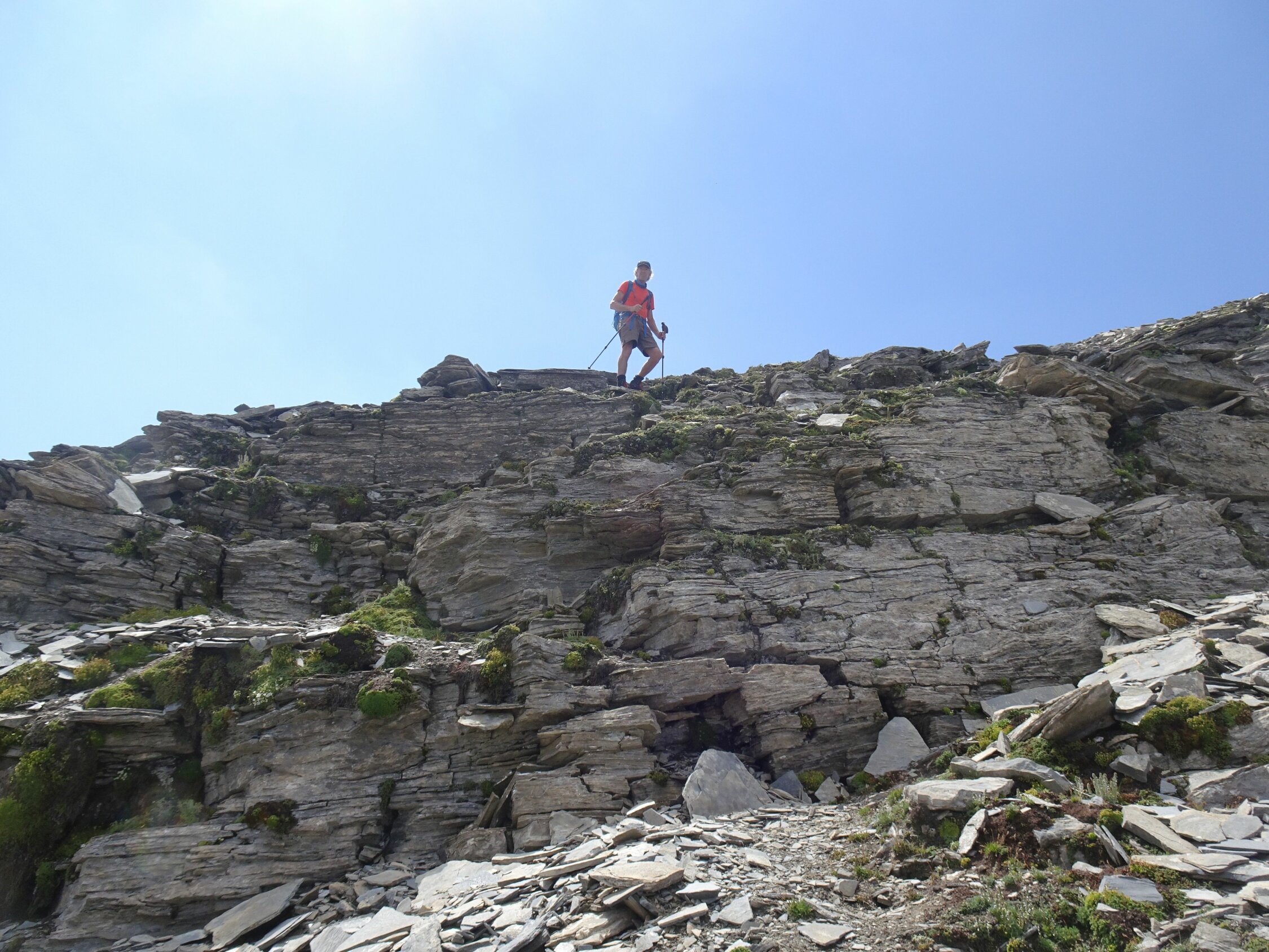 Im Abstieg sind wir dem Ostgrat etwas weiter gefolgt, konnten dann aber die Steilstufe von oben nicht einsehen und sind daher wieder Richtung Aufstiegsroute zurückgequert.