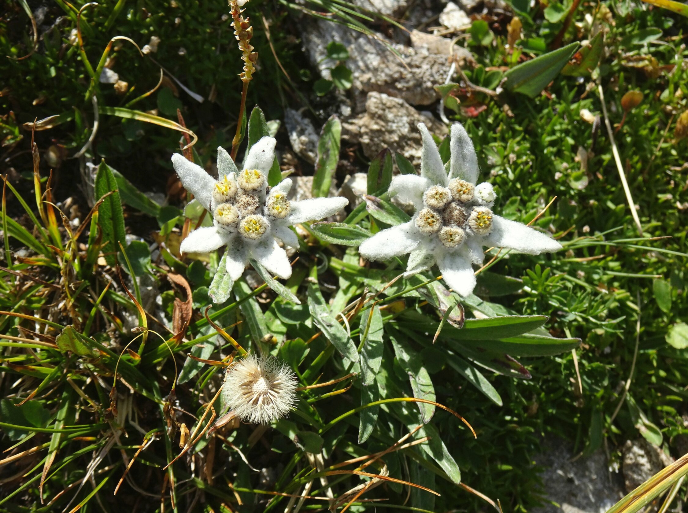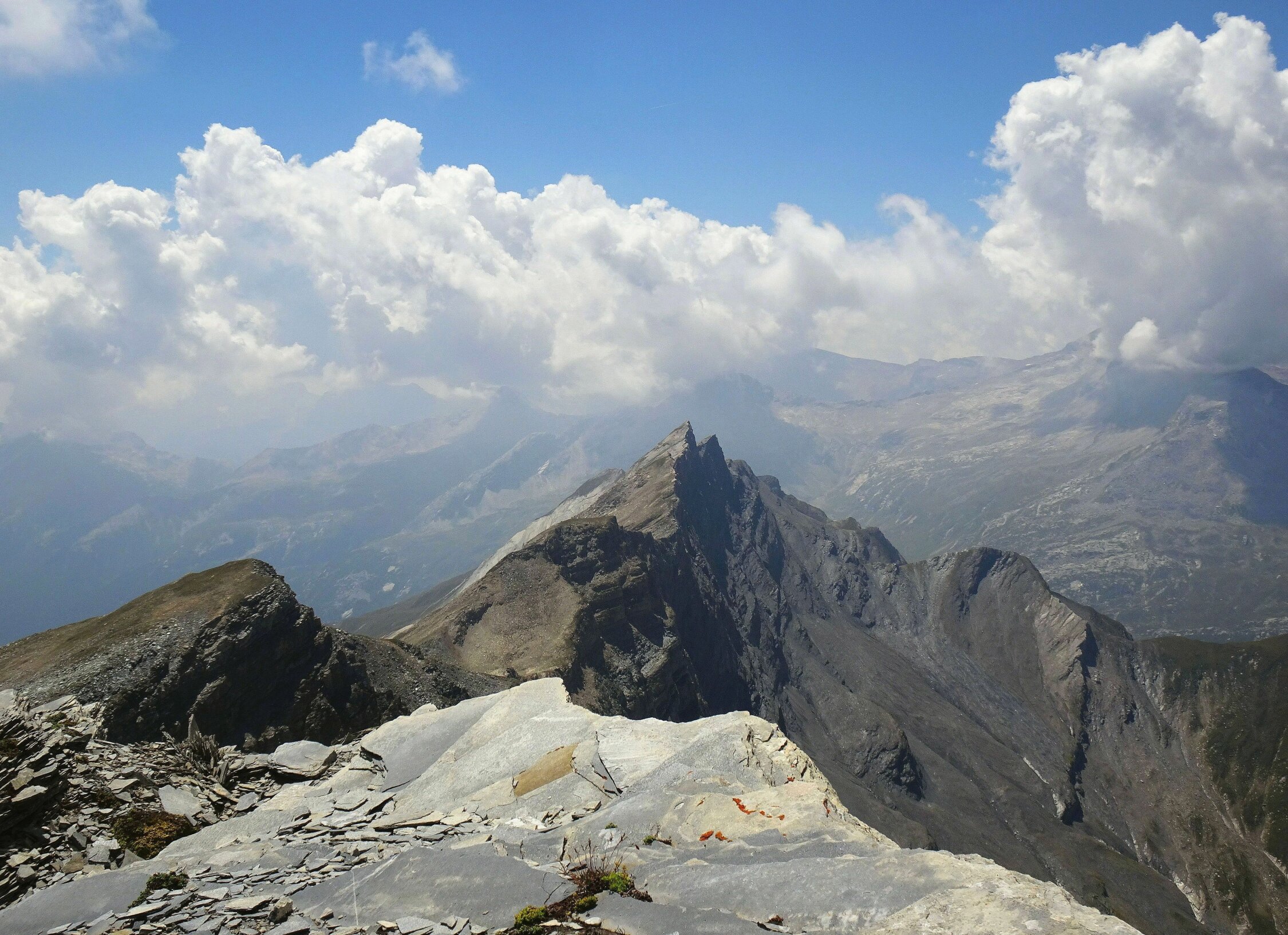 Wetter schön und sehr warm, allerdings schon früh Quellwolken. Die Fernsicht, vor allem nach Süden, war daher etwas eingeschränkt. Viele Edelweiß am Ostgrat, sehr kleine, aber dafür um so mehr...