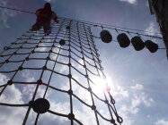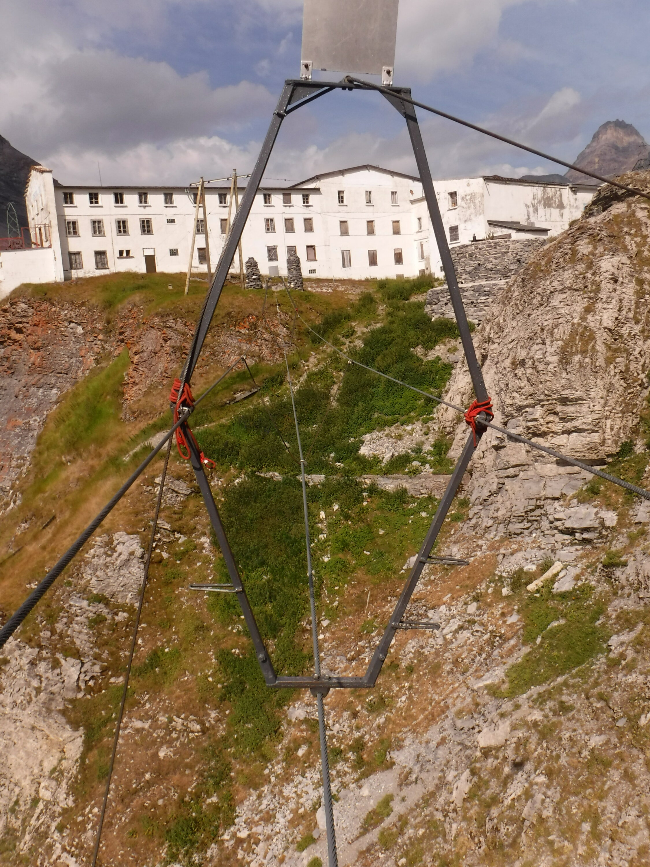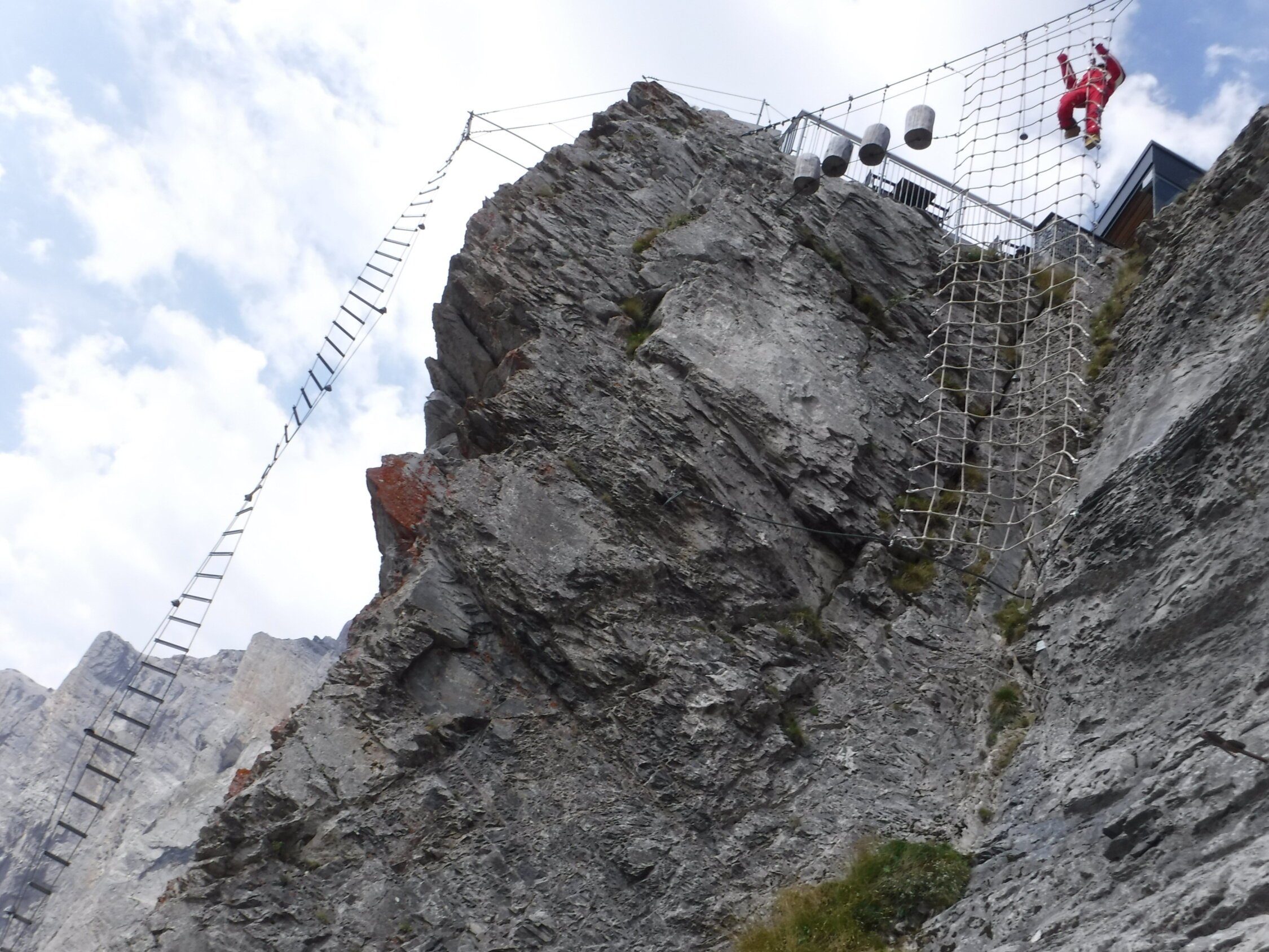 Der Steig ist eine Mischung aus Klettersteig und Seilpark. In der Route ca. 100 m über dem Boden sind Schwindelfreiheit und Armkraft gefordert.