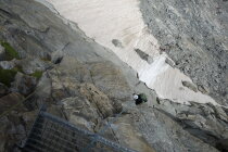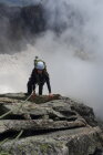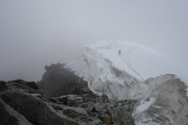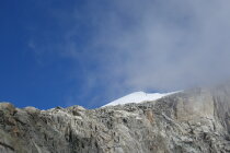 Um ca. 12:00 am Gipfel, dieser zum Teil in Nebel. Im Abstieg kamen ca. 10 Seilschaften nach uns vom SE-Grat. Wir haben uns mit Seilschaften zusammengetan und sind am fixen Einfachstrang 2x50m, 1x70m runter, dadurch entkamen wir dem Seilgewirr =), sonst langt ein 50m Seil, hat alle 25m einen Stand
