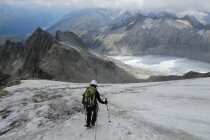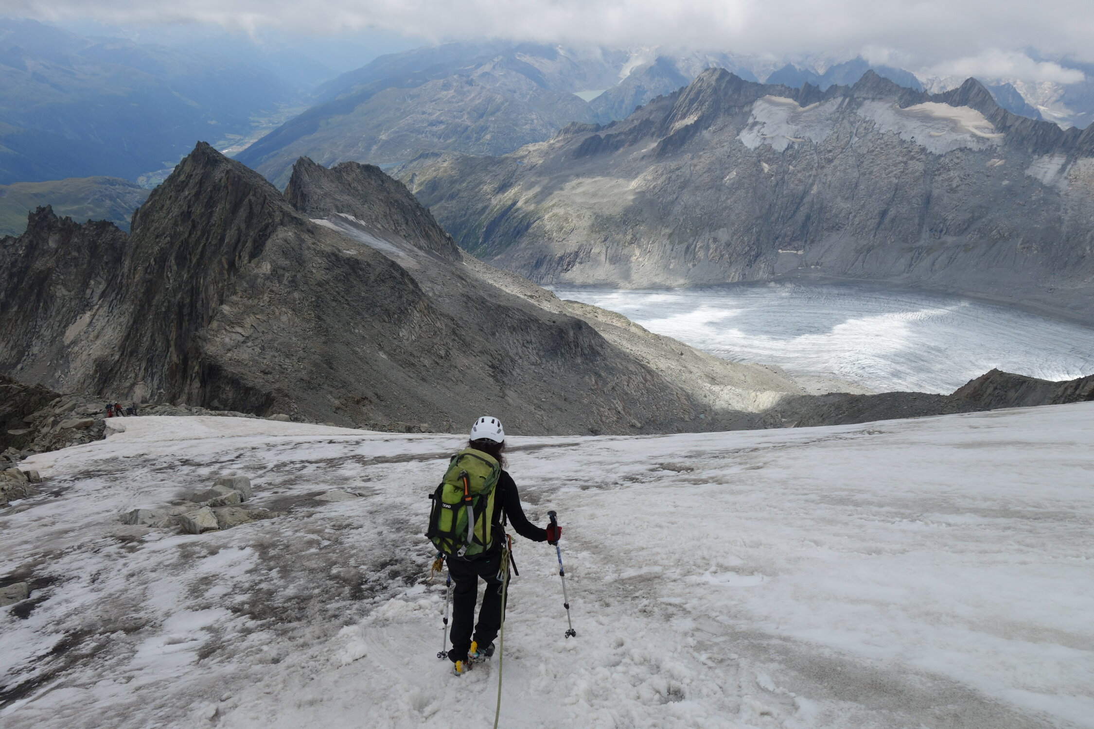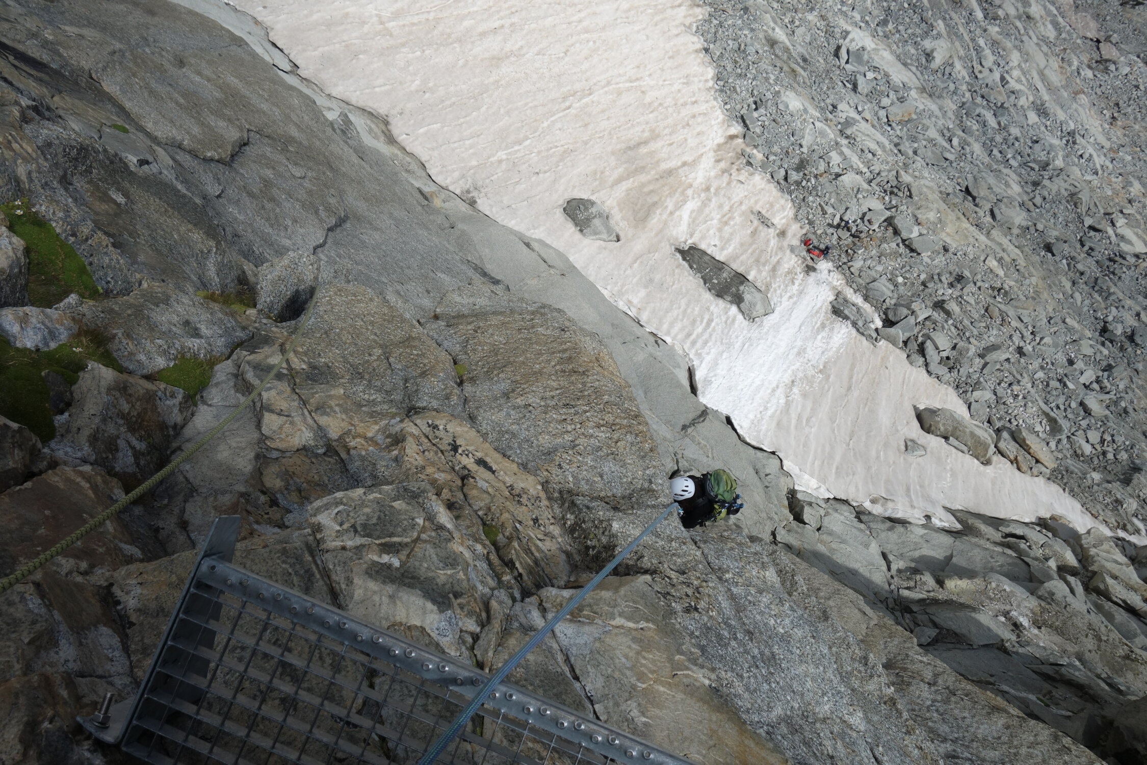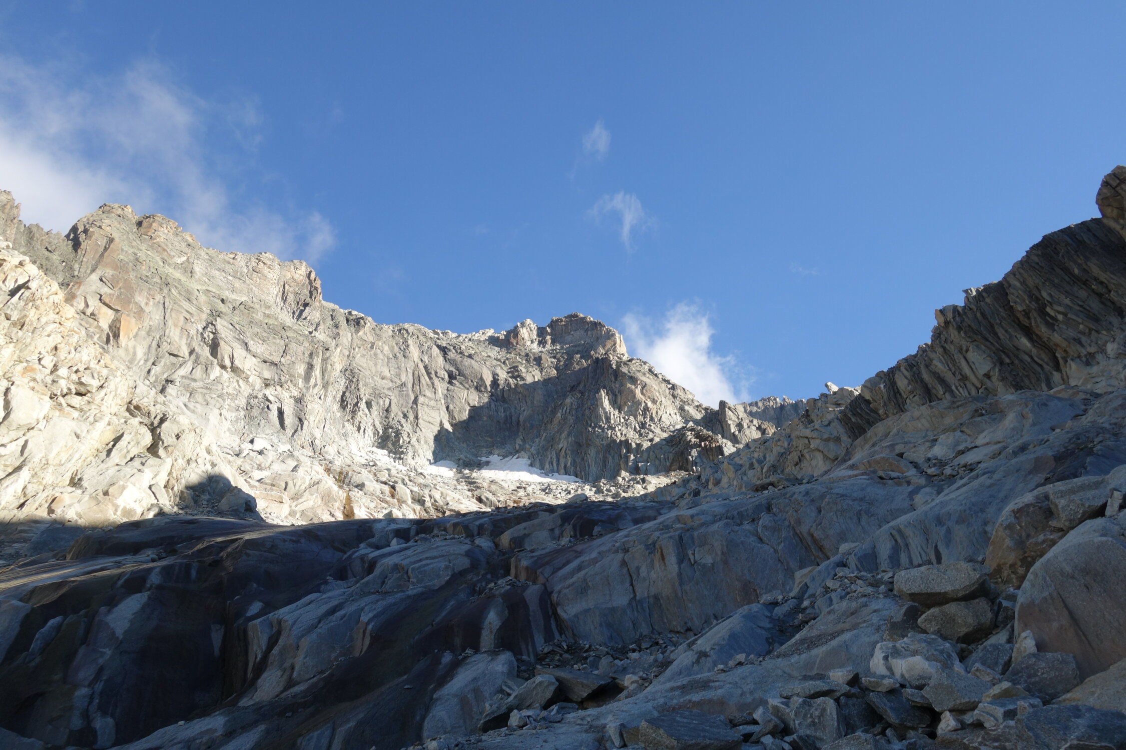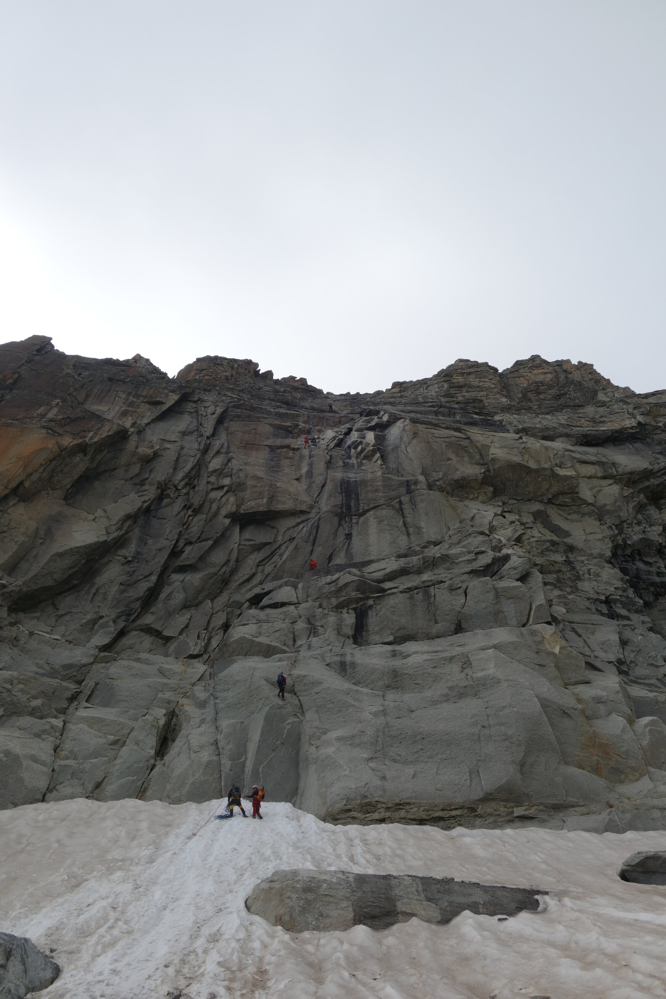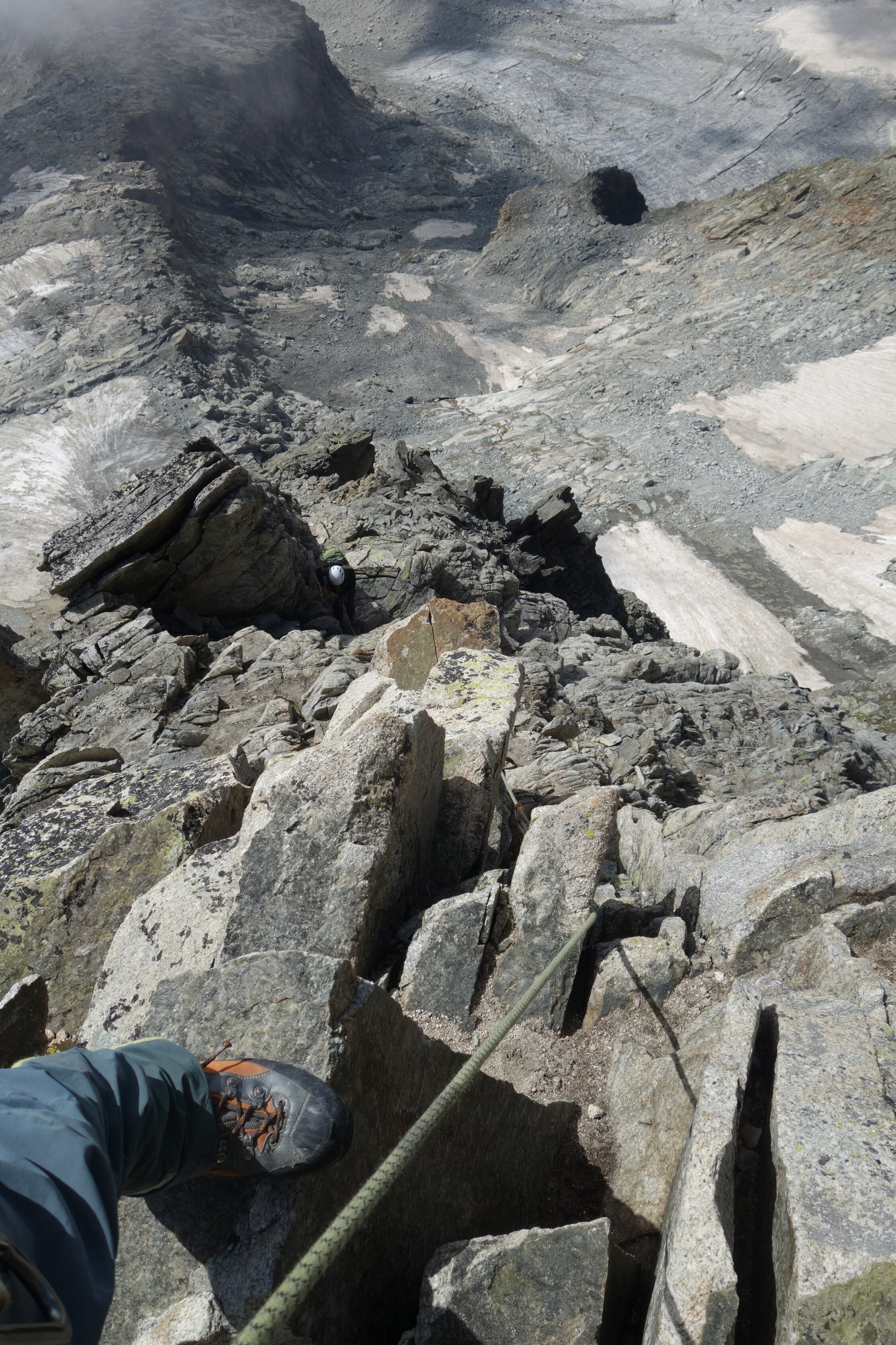 Start um 6:30 von der Sidelenhütte. Am Hannibalturm vorbei sind wir auf der Moräne aufgestiegen bis der Sidelengletscher wieder flach wurde ca. P.2800. Am morgen wenig Steine am Gletscher in Bewegung , am Nachmittag rutschen in der Flanke von der Moräne die Steine - daher sind wir auf deren Grat geblieben. Gletscher ist Ab P.2900 grössenteils Schutt bedeckt bis zum Einstieg, daher ohne Steigeisen bis zum Einstieg.