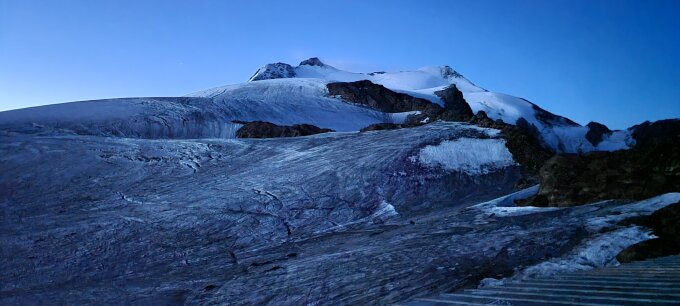 Direkt vor dem Gipfel eine ca. 3 Meter breite Spalte,kann nur schwierig umgangen werden, muss abgeklettert werden - ein Bergführer auf der Hütte meinte hier wird eine Leiter aufgestellt.