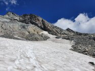 Start der Tour wegen ÖV-Anreise erst um 09:00 ab Golzern Talstation. Mit schnellem Schritt schafft man bis zum Blindensee (P1374) in 1.5 Std. Es muss bis da nicht all zu viel Wasser mitgeschleppt werden, denn da hat es einen Trinkbrunnen. In 0.75 Std erreicht man dann die Hinterbalmhütte. Bitte beachten, dass der Skitourenweg auf der anderen Seite des Brunnibachs, welches den Weg etwas verkürzen würde, wegen Steinschlag im Sommer geschlossen ist. Bis zur Brücke bei P1900 auf dem Wanderweg und ab da geht links ein sehr gut erkennbarrer Weg hoch zum Tschingelsee (bis da total 3.5 Std). Hier eine halbe Stunde Rast gemacht und für eine Abkühlrung kurz im See gesprungen; Seeboden ist schlammig, aber man sinkt nicht ein. Ab hier ist der Weg nicht immer klar erkennbar, aber einzelne Steinmännchen und ein ausgeblassener Weg ist manchmal erkennbar. Die Schlüsselstelle wird mit einem Seil entschärft. Gleich nach dem Seil dann eher rechts statt links haltend hoch zum Grat. Vom See aus zog sich der Weg doch noch in die Länge, so, dass ich erst um 15:00 oben war. Wie schon im Routenverlauf erwähnt würde ich hier bei Nässe nicht rauf-oder absteigen, da die Steine sehr plattig sind und deswegen nicht so gute Griffe zum Halten verfügen. Bei Regen würde ich eher die Westflanke (Auf- und/oder Abstieg) wählen.