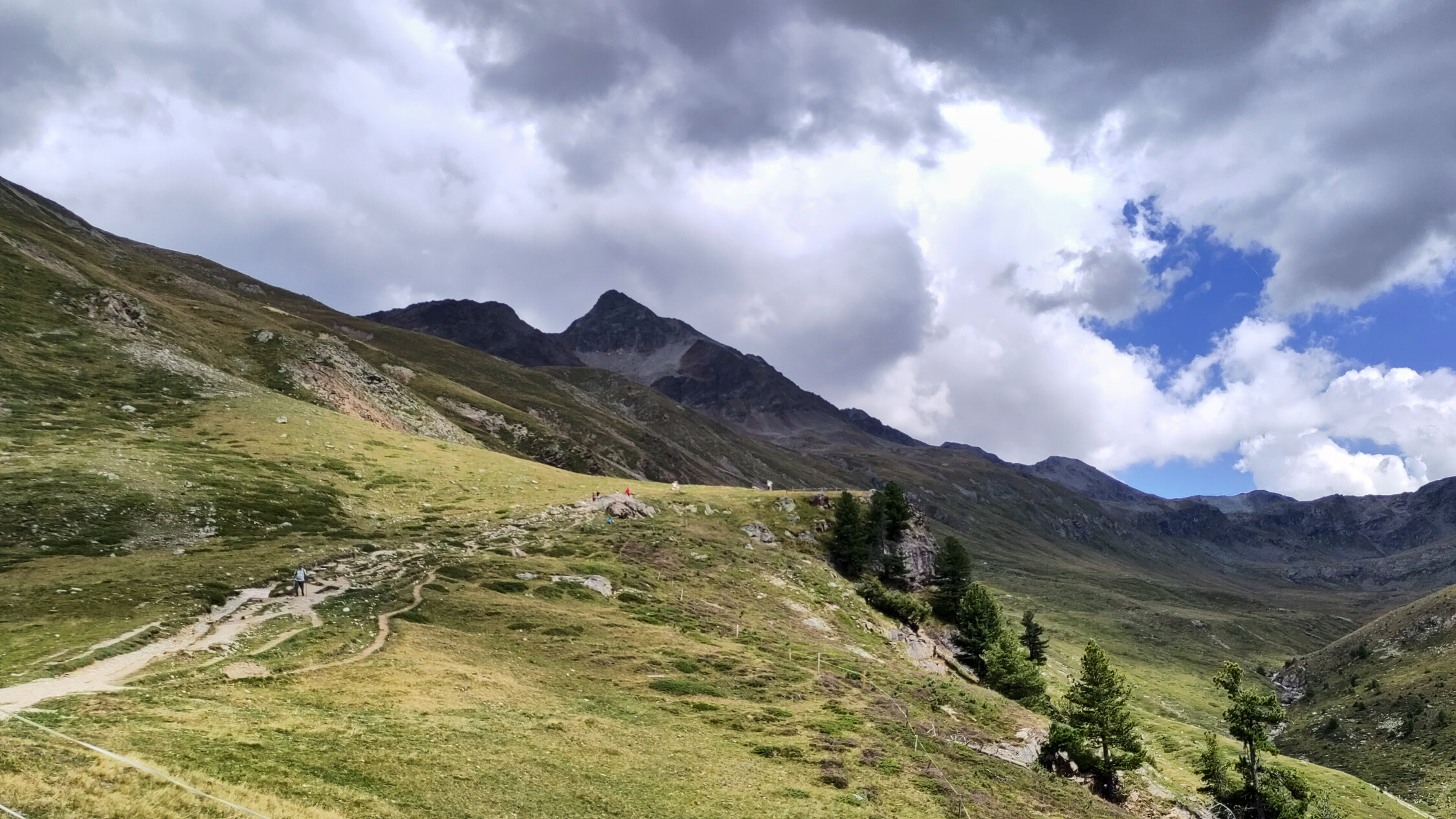 Es führt ein tadelloser Weg von der Alp Languard bis zum Gipfel. Ca. 100 Hm unterhlab des Gipfels liegt die Georgy Hütte.