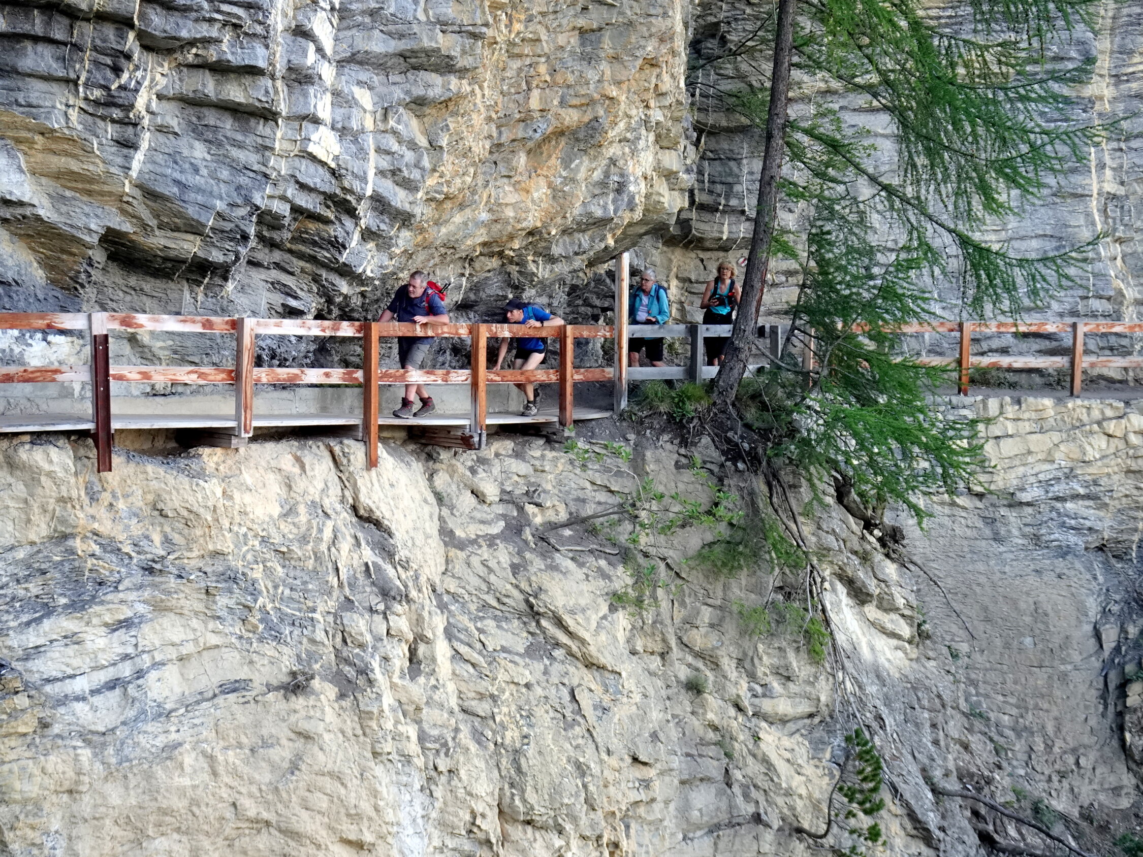 Als ich im letzten Stück zum Grand Bisse de Lens hinunterstieg, da ging es los: eine Bum-Bum Musik (Techno?) in grösster Lautstärke! Man kann sich vorstellen wie dies tönt in einem Engen Talgrund, unwahrscheinlich! Man vibrierte selber. Bei einer Brücke sah man Camper und Zelte. Bergfreunde der besonderer Art?