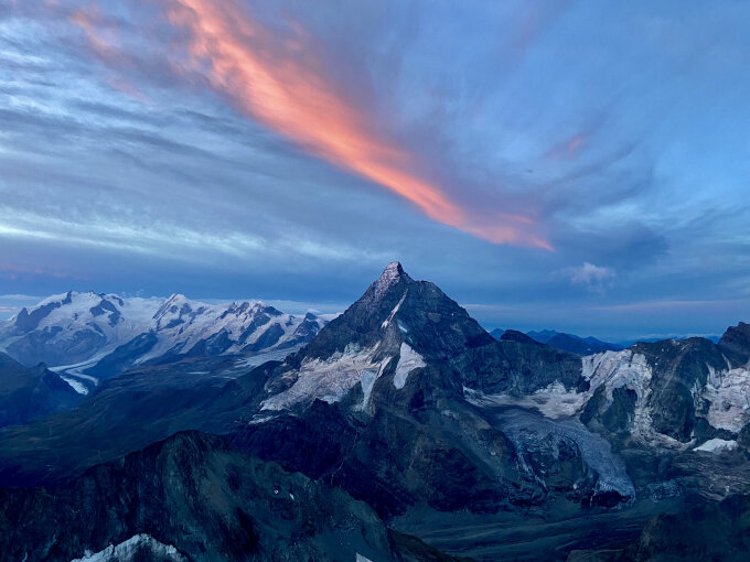 Diese Woche soll es am Nachmittags jeweils gewitterhaft werden. Wie gesagt, schadet es dem Grat nicht. Höchstens muss man den Hüttenzustieg etwas früher in Angriff nehmen.