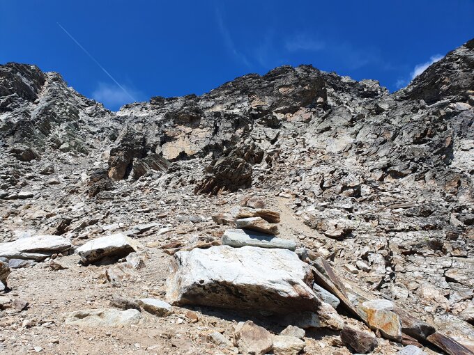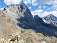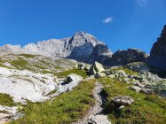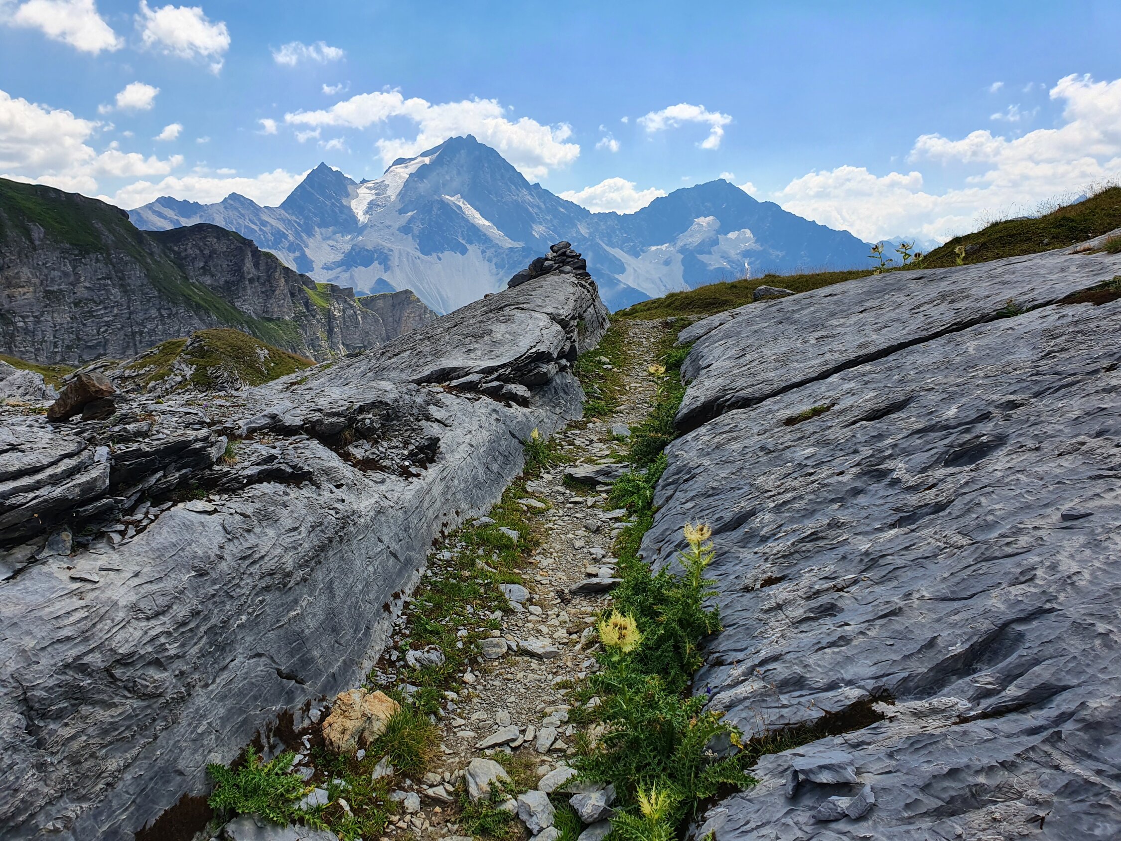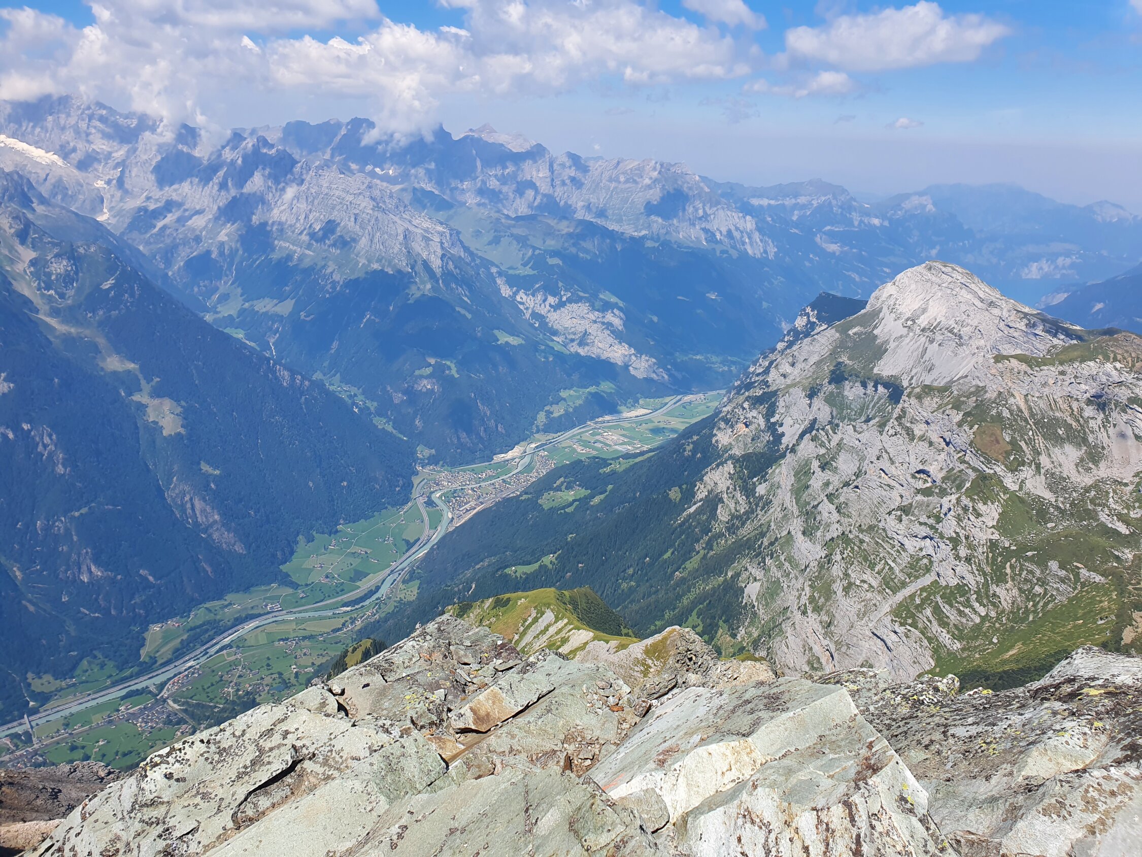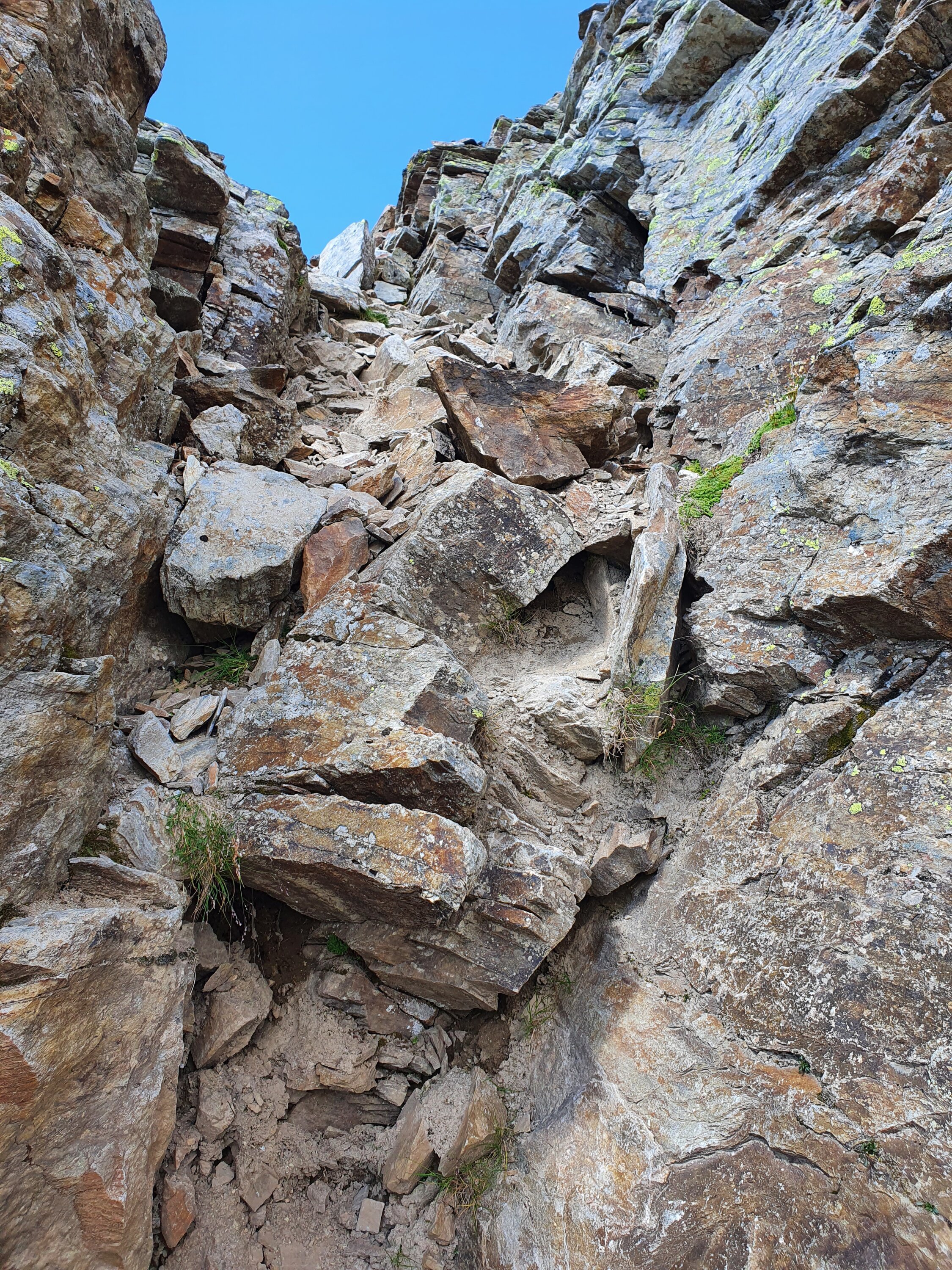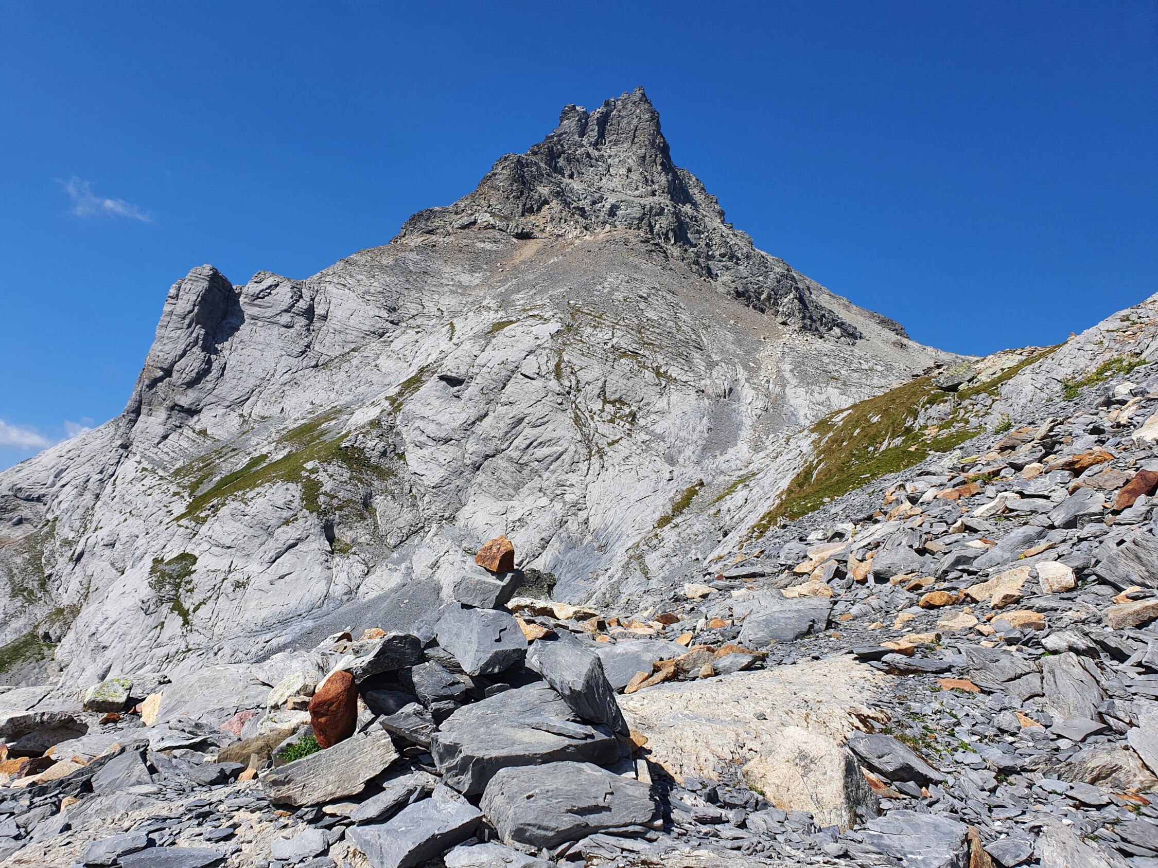 Von Golzern Bergstation (09:20) steil hoch via Bockistock auf blauer Route bis ca. P2400. Dann verlässt man die blaue Route auf einem gut erkennbaren Weg in nord-westlicher Richtung. In der Karte ist dieser Weg teils noch bis fast P2700 ersichtlich. Trotzdem bin ich zuerst etwas leicht vom Weg abgekommen. Trotz genug Steinmänner gibt es nach dem Band auf der südlichen Seite viele Aufstiegsoptionen. Ich habe ein anderes Couloir hoch- (mitte) und noch mal ein leicht anderes daneben abgestiegen (links), jedoch die Normalroute (rechts) erst beim Abstieg zum Band erkannt. Jedenfalls gibt es viele Optionen zum Auf- und absteigen vom Band bis zum Gipfel. Unten um 14:30 pünktlich für die Bahn angekommen. Sie fährt bei 6 Personen auch ausserordentlich.