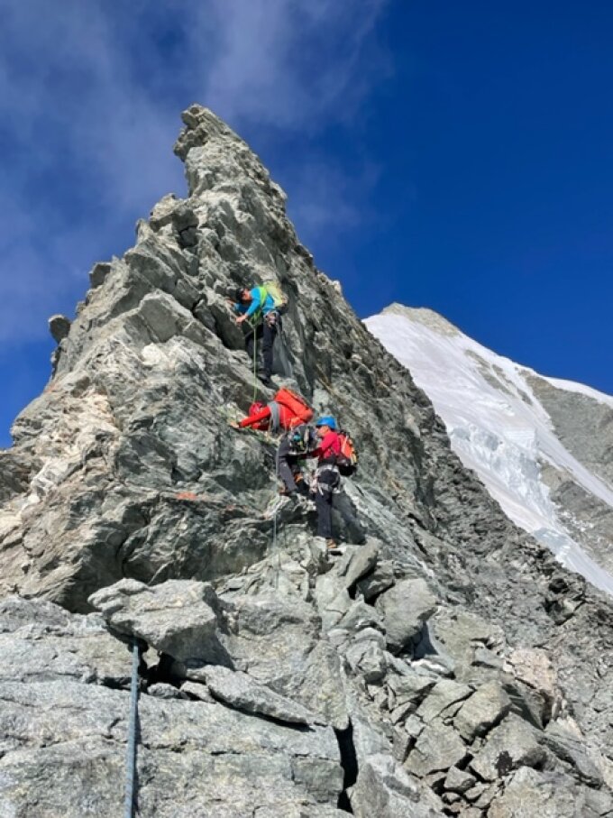 4 Seilschaften auf dem OStgrat + 1 in der Traverse Ostgrat-Nordgrad