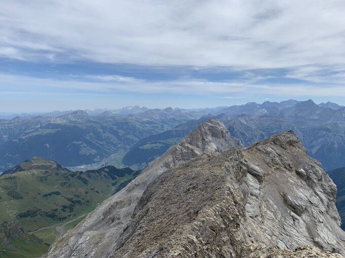 Danach dem Ostgrat folgen bis Älplilücke, wobei man noch einige Gipfel wie das Vorder Schloss überschreitet.