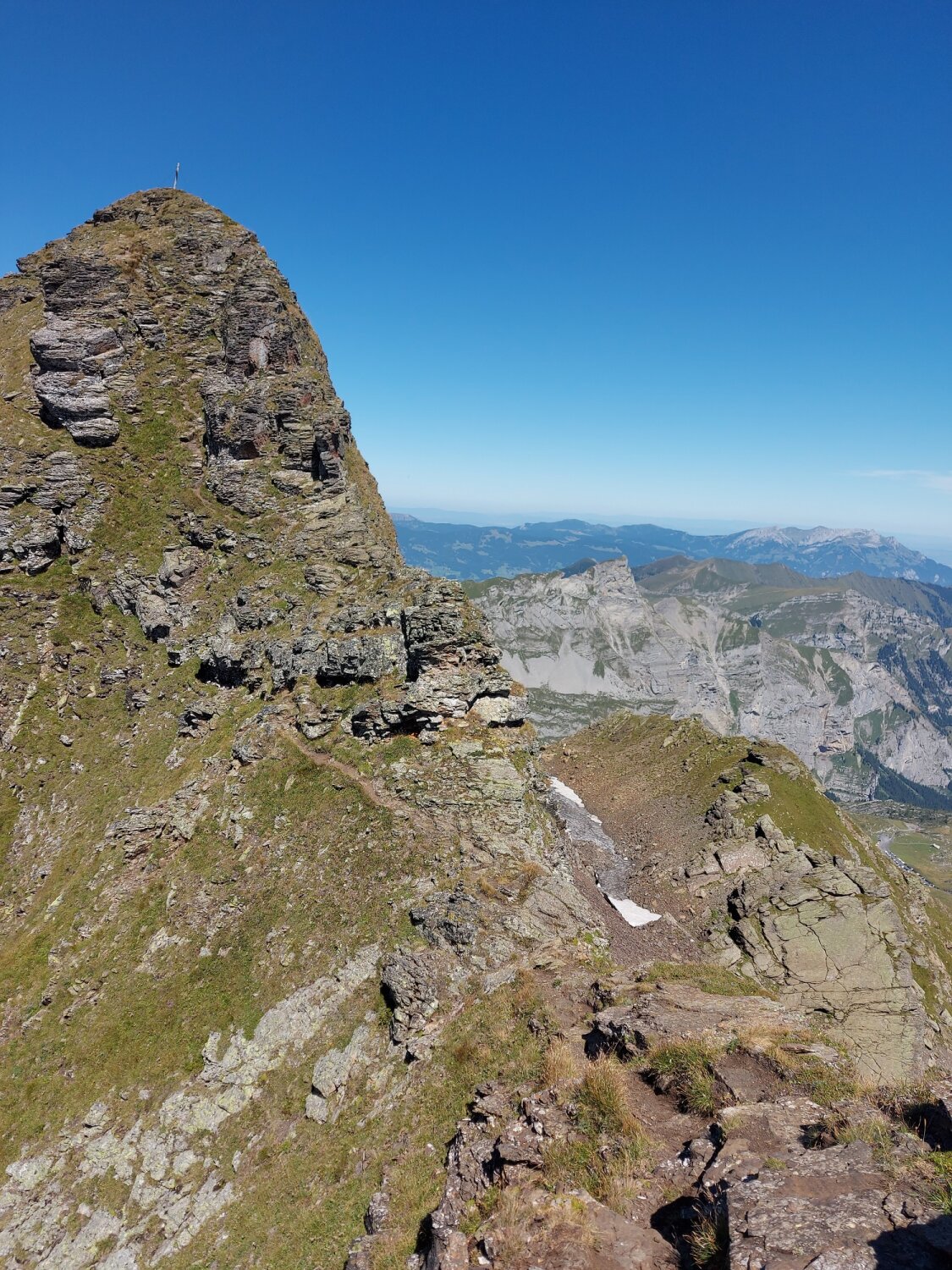 Die obige Beschreibung tel quel übernommen. Die Schwierigkeit T4 kann vertreten werden. Route kann nicht verfehlt werden, die technischen Schwierigkeiten sind nicht sehr gross, einzig die längere Exposition und damit Absturzgefahr beim Stolpern können ein T5 rechtfertigen.