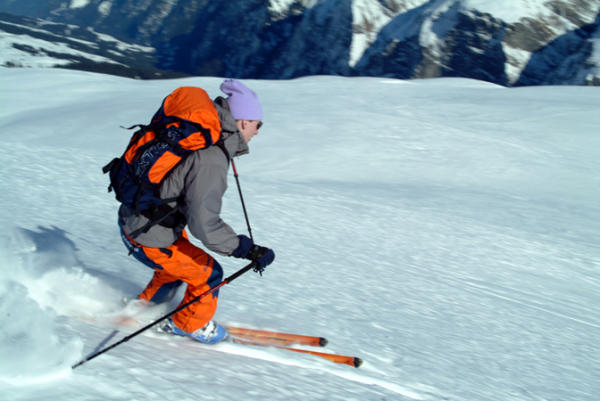 Gute Pulverschneeverhältnisse, zum Teil windgepresst aber gut fahrbahr. Gipfelhang leicht verfahren.