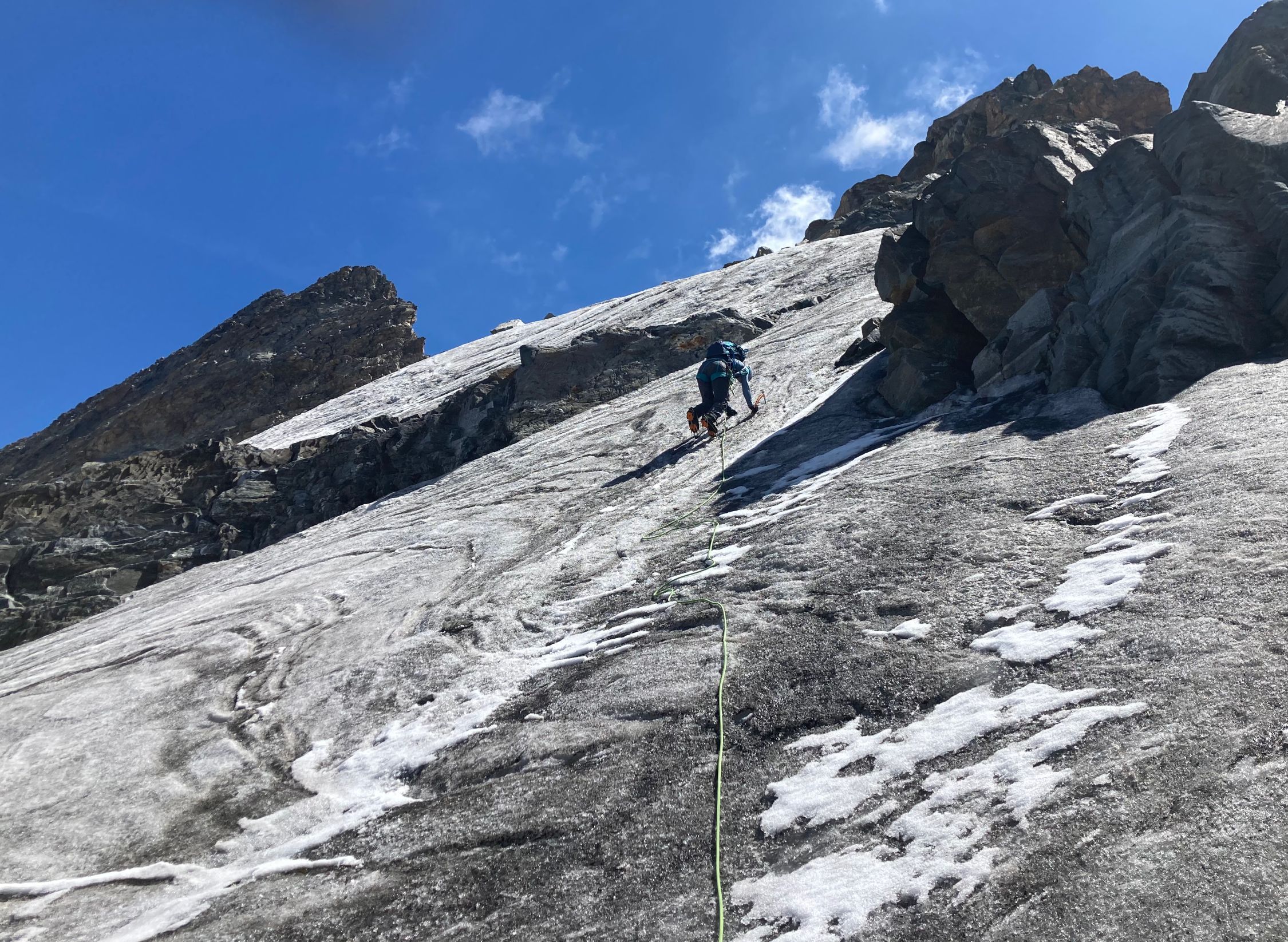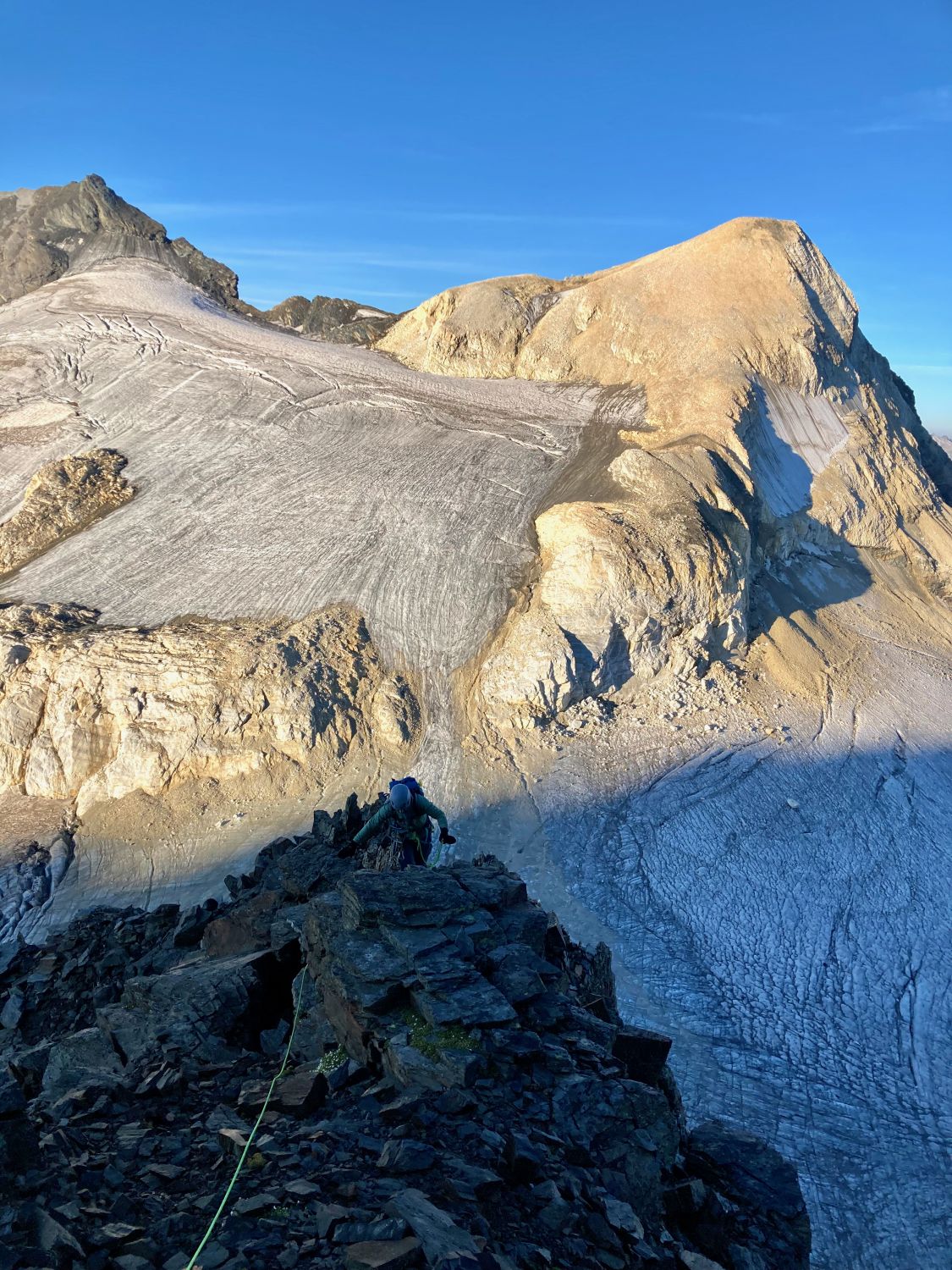 Der Vadret dal Tremoggia wird zunehmend spaltiger, der Fels zur Fuorcla d'Ota zunehmend brüchiger, das Eisfeld zum Südwestgrat zunehmend steiler.