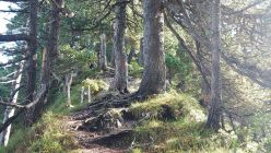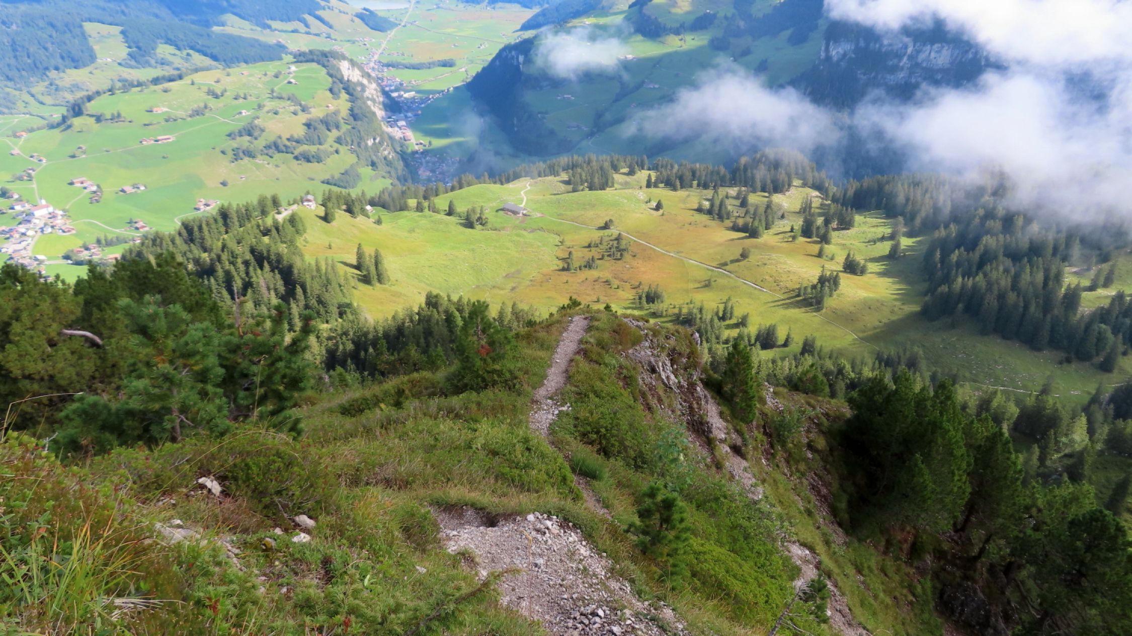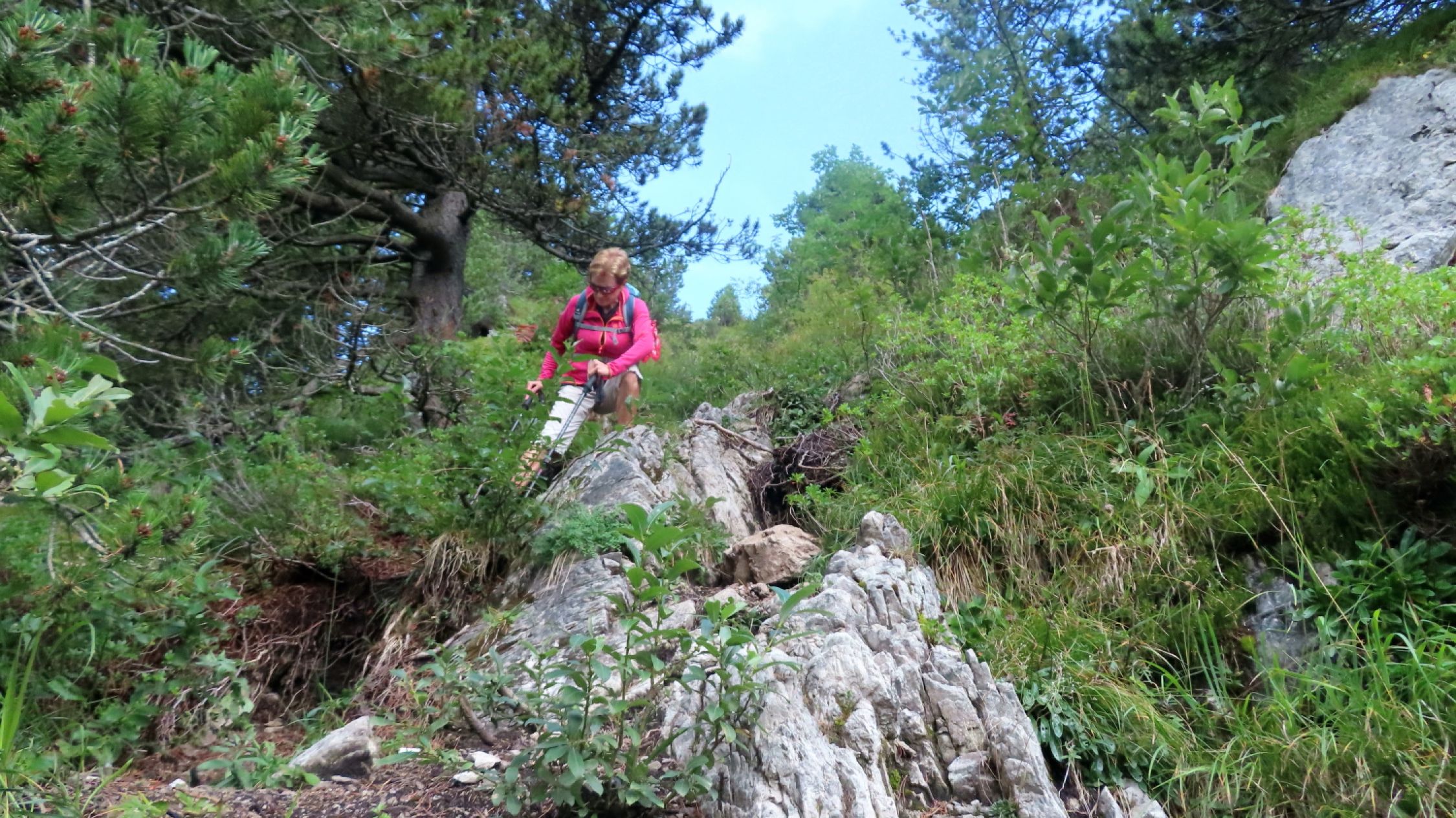 Noch Restfeuchte von den vorherigen Niederschlägen bzw. Matsch auf der Weide oberhalb der Roggenegg. Die Wege und Pfade waren aber gut begehbar. Stöcke beim Abstieg zweckmäßig.