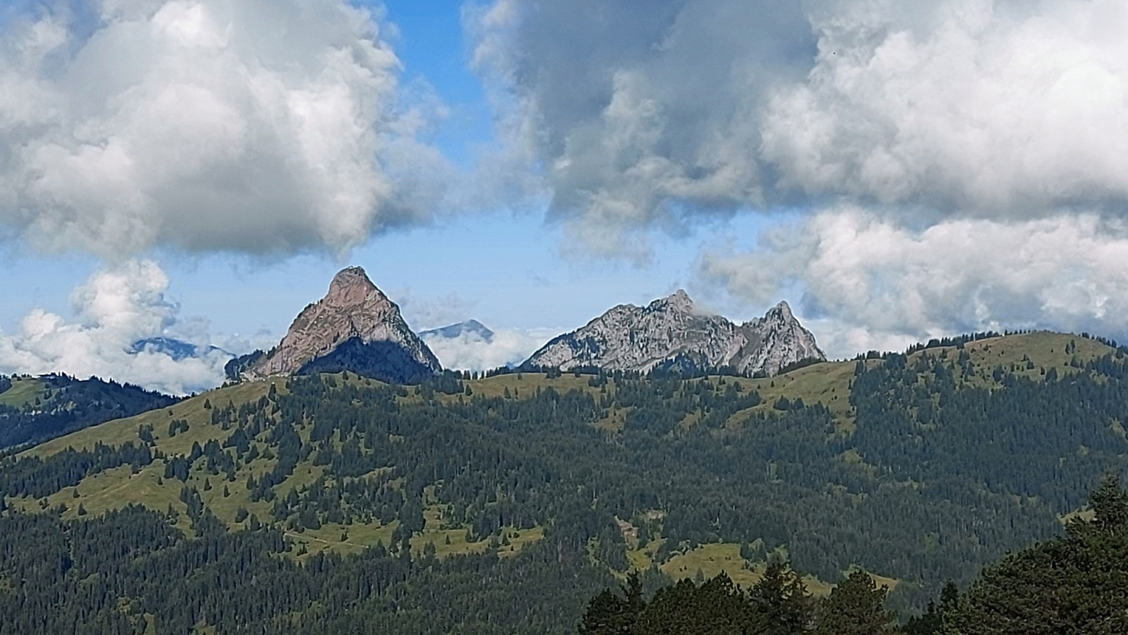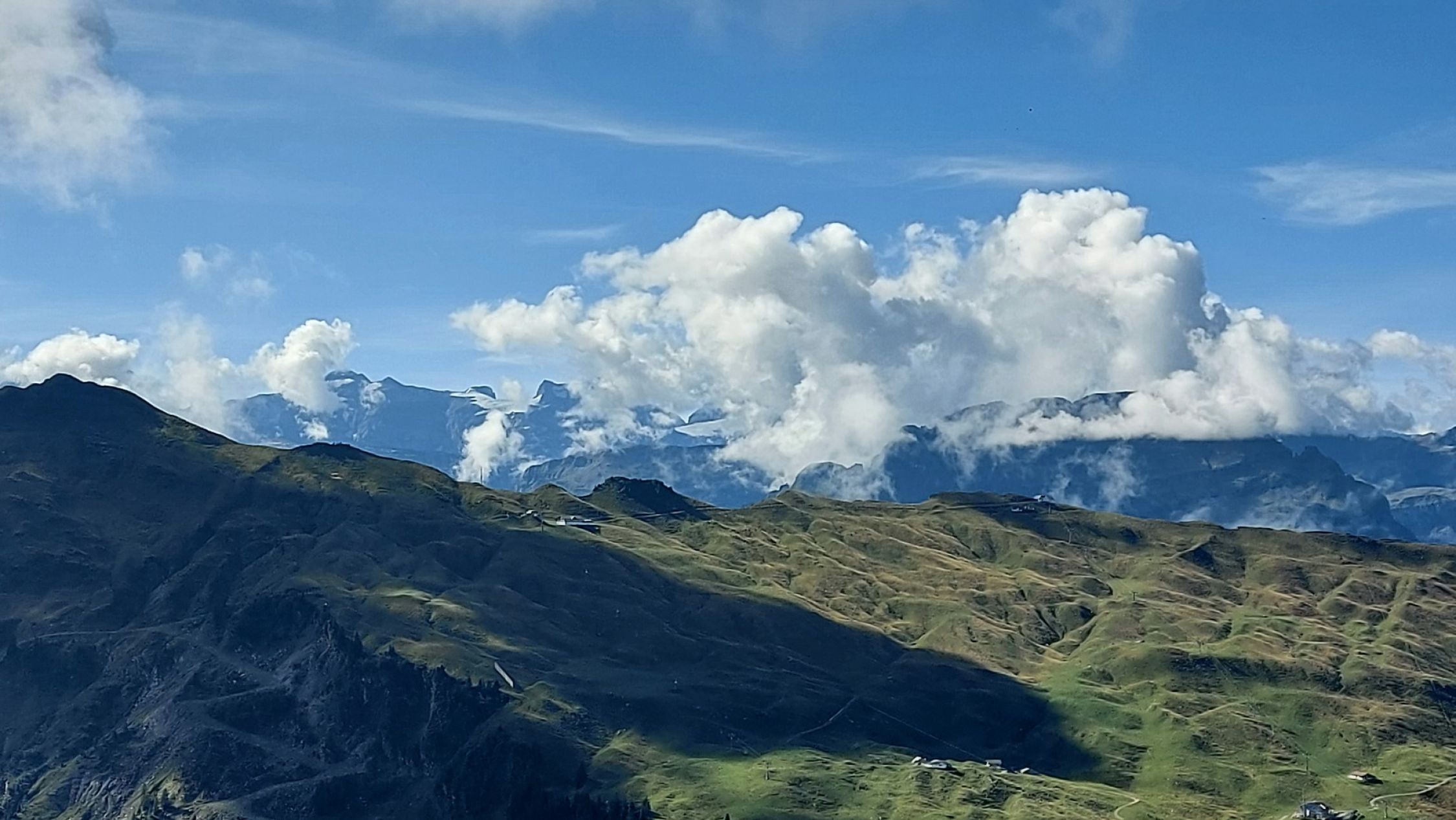 Am Morgen um 8:00 Uhr wolkenlos bei 10 Grad. Über den höheren Gipfeln bildeten sich bald Quellwolken, welche die Gipfel einhüllten. Auf dem Roggenstock blieben wir davon verschont.