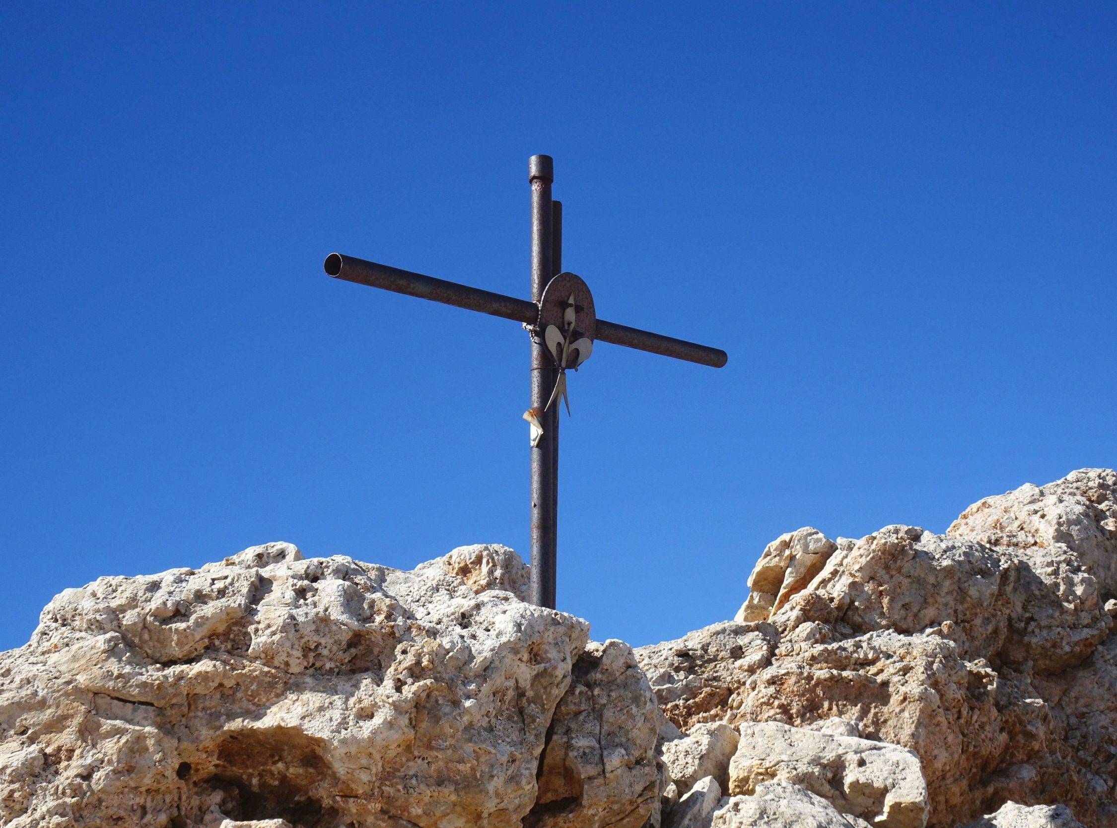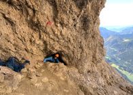 Obwohl es wenig Informationen zu der Tour gibt, wird sie wohl doch des öfteren begangen. Wir haben einen Alleingänger am Gipfel und im Abstieg eine Dreiergruppe in der Höhle getroffen. Vorsicht auf Steinschlag, insbes. wenn mehrere Leute in der Route sind.