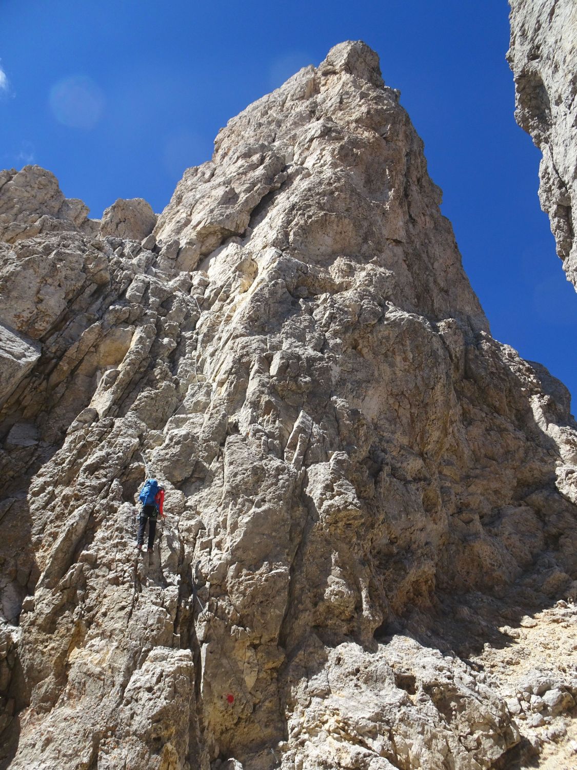 Spannende und abwechslungsreiche Tour mit weitreichendem Dolomitenpanorama am Gipfel. Kann im Zustieg auch mit dem Klettersteig Bolver-Lugli verbunden werden.