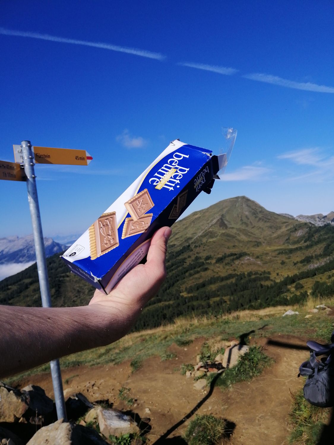 Die Aussicht ist heute besser. Keinen Kaffee dabei, dafür Schoggiguetsli. Das Leben ist gut, gerne wieder.