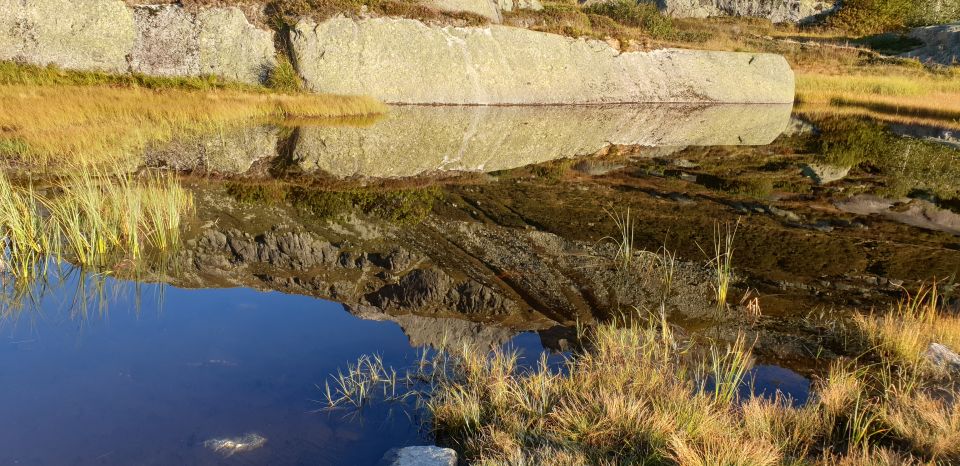 Bei Nebel könnte die Wegfindung schwierig sein über die Endlose Steinlandschaft die Blauweiss markiert ist zur Bergseehütte , über Milliarden von Steinen.