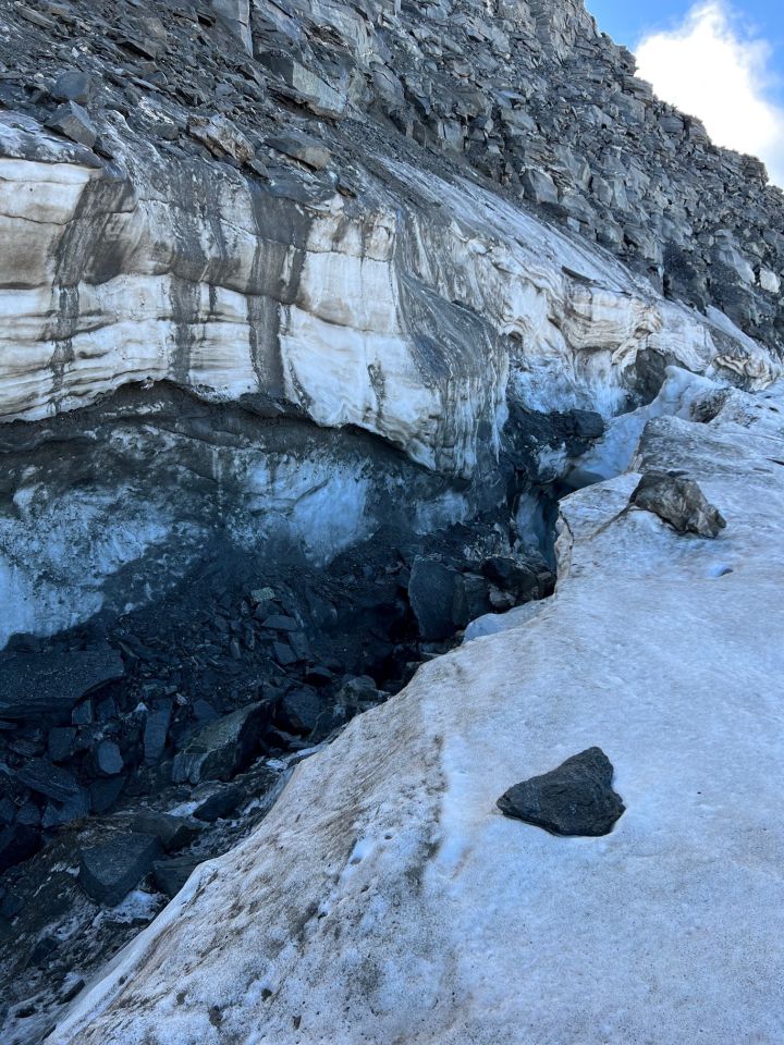 Beim Einstieg in den West- bzw. Südgrat war der Schrund zu gross. M.E. würde man im Winter ca. 10 - 15m weiter oben in den Grat einsteigen. Auch waren sehr viele lose Steine bereits ins rutschen gekommen... Wir haben dann gedreht.