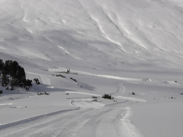 Ganzer Weg von Pistenfahrzeug ohne Rücksicht auf Natur planiert (Hundesportanlass 13./14. Januar)
