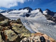 Fantastische Aussicht zum Rosenlouwigletscher mit dem Wellhorn, Wetterhorn, Mittelhorn, Rosenhorn und Bärglistock.