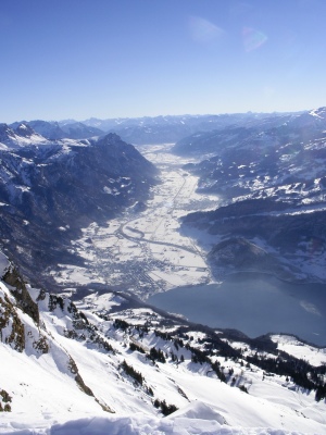 Starkenbach über offene Hänge gegen Süden unter der Seibahn durch, auf ca. 1200 m im Wald der Strasse folgend bis zur Seilbahn-Bergstation, beim Strichboden auf den schmalen weiter oben breiter werdenden Selunrücken zuoberst bis 30° steil.