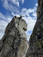 Wir starteten in der Scharte zwischen Turm 1 und 2, überkletterten dafür alles inkl. Gendarme (absolut lohnenswert!).
