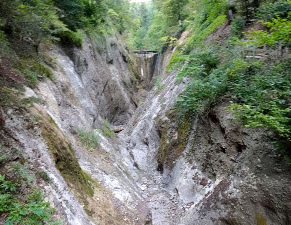 Der Riderbach, der bei starkem Regen, Gewittern und/oder Schneeschmelze unpassierbar wird, war heute ganz trocken. Nicht mal eine Pfütze habe ich gesehen. Der Weg in der Schlucht war nur leicht feucht.