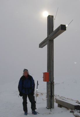 Genügend Schnee, alles pulvrig, bereits viele Spuren aber fast keine Tourengänger unterwegs, leichter Schneefall, teilweise schlechte Sicht, die Sonne versuchte sich immer wieder durchzukämpfen, Gipfel abgeblasen, Skidepot ca 15 Meter unter Gipfel, problemlos.