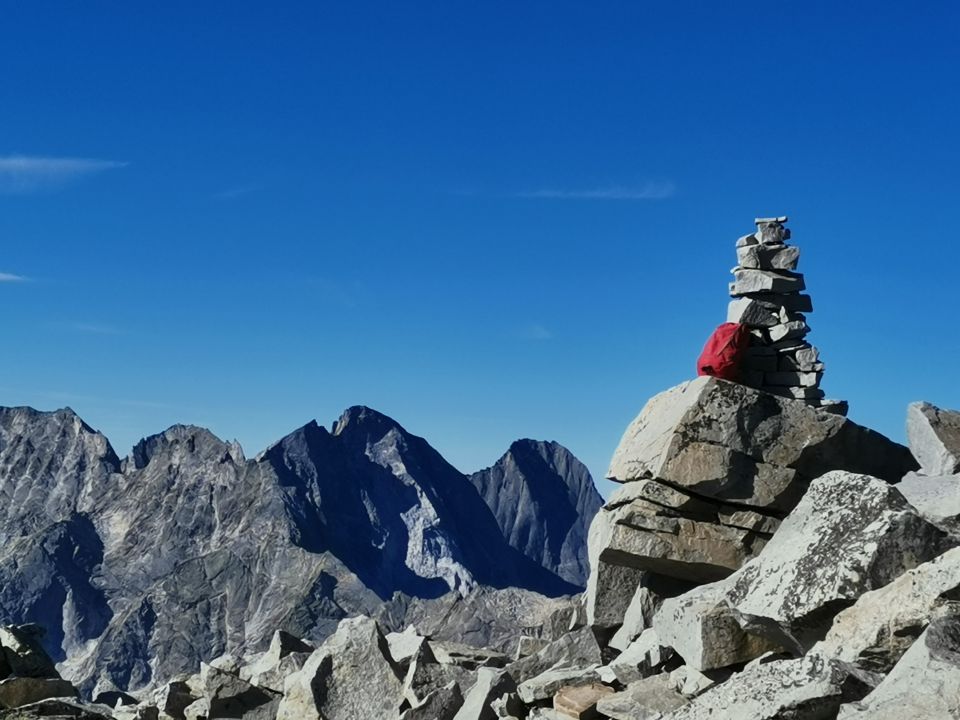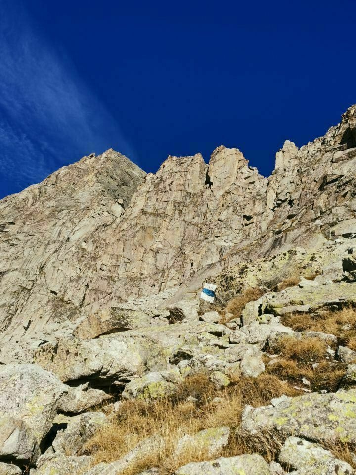 Beim Zustieg, noch im Schatten auf der E-Seite des Pass da Casnil Sud, waren die Felsen vom Reif ziemlich gschlifrig. Aber oben an der Sonne war der Fels trocken und warm. Kein Schnee, wenig Wind, tiefblauer Himmel, weite Sicht: Es war fantastisch.